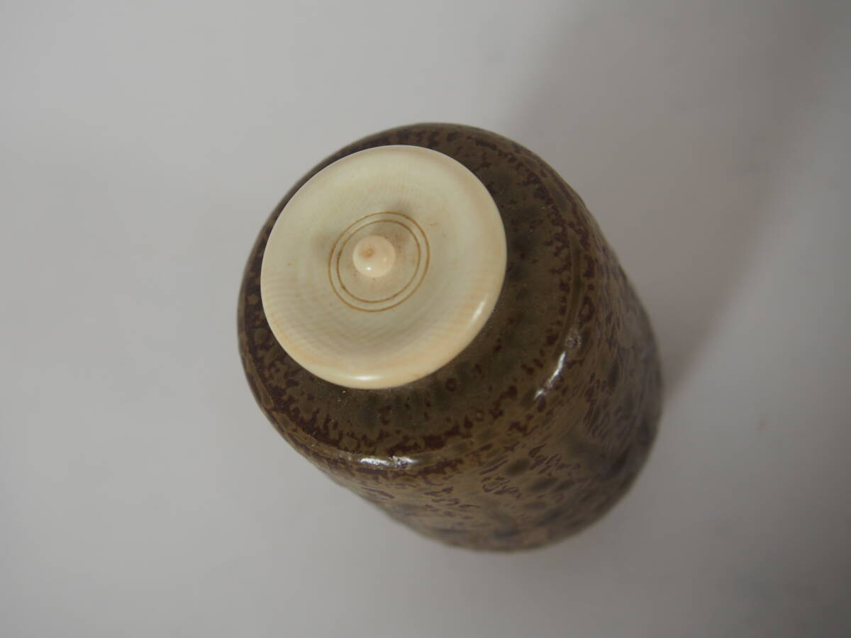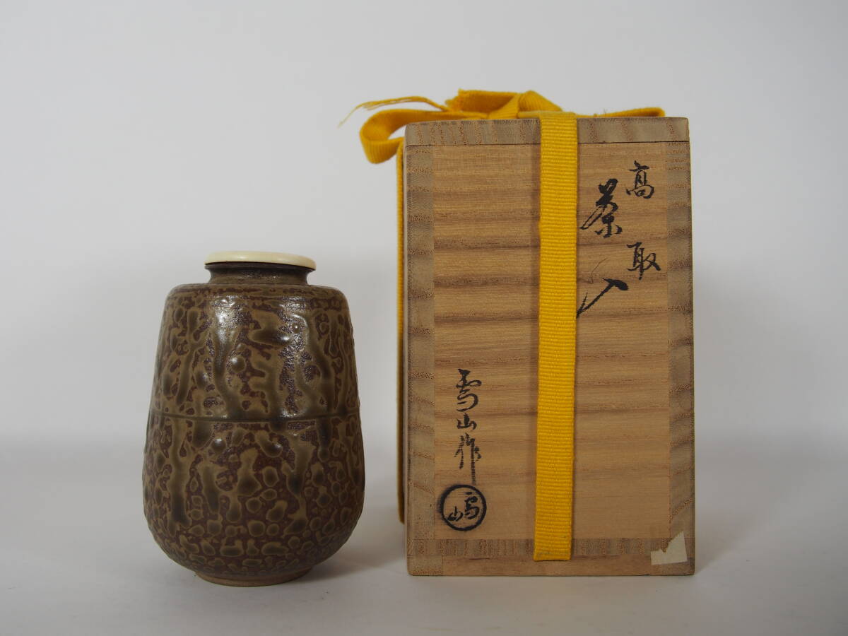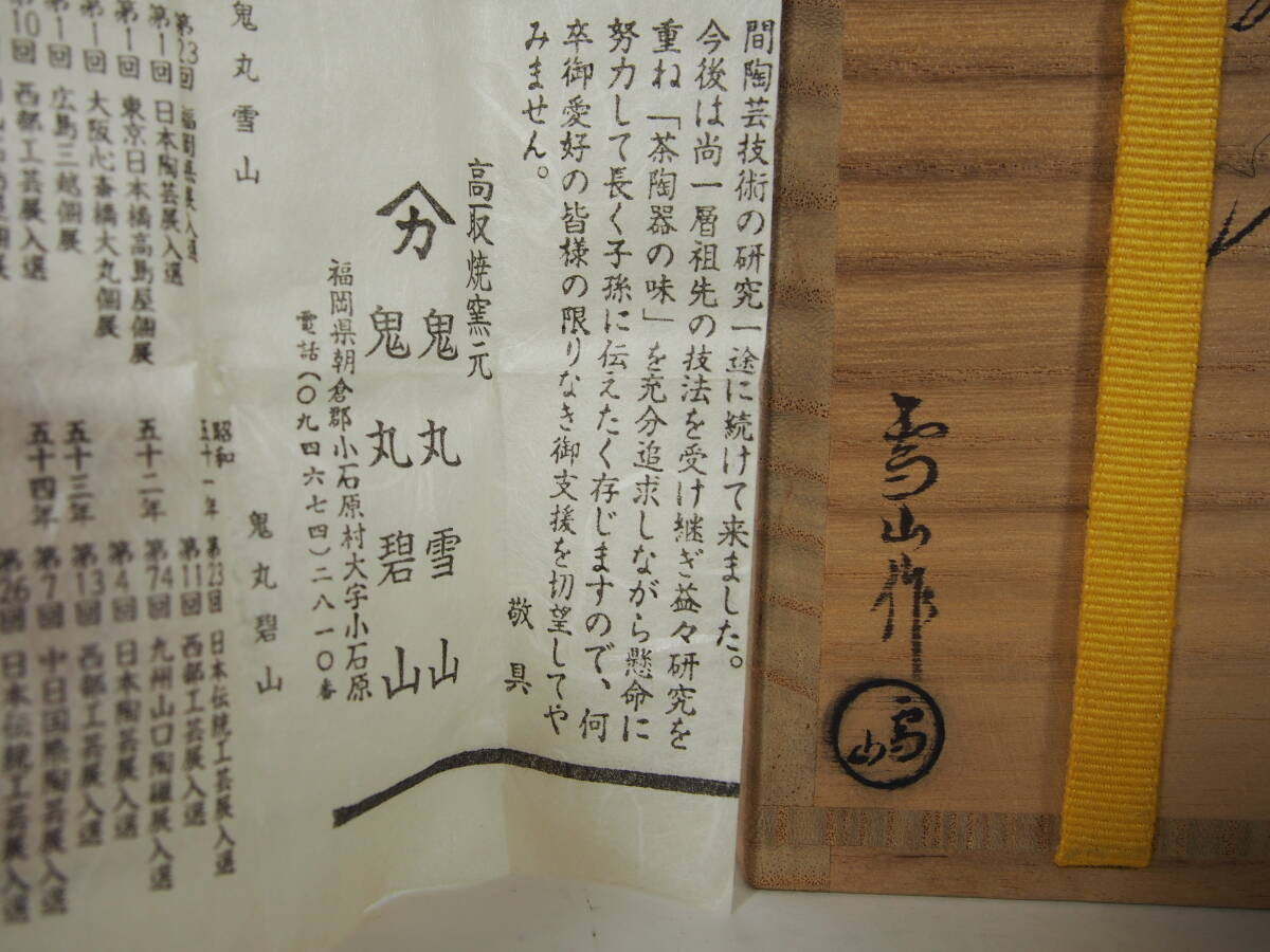 鬼丸雪山 高取焼 茶入 在銘 共箱 桐四方桟 由来書 茶道具 N-93