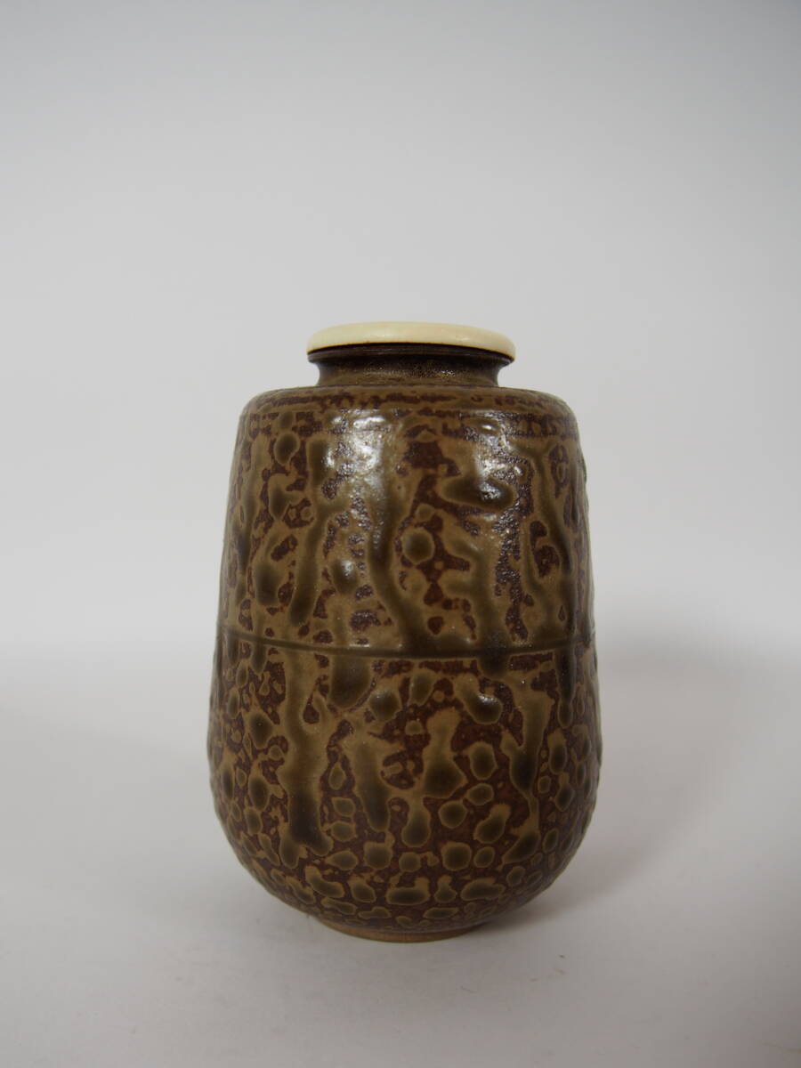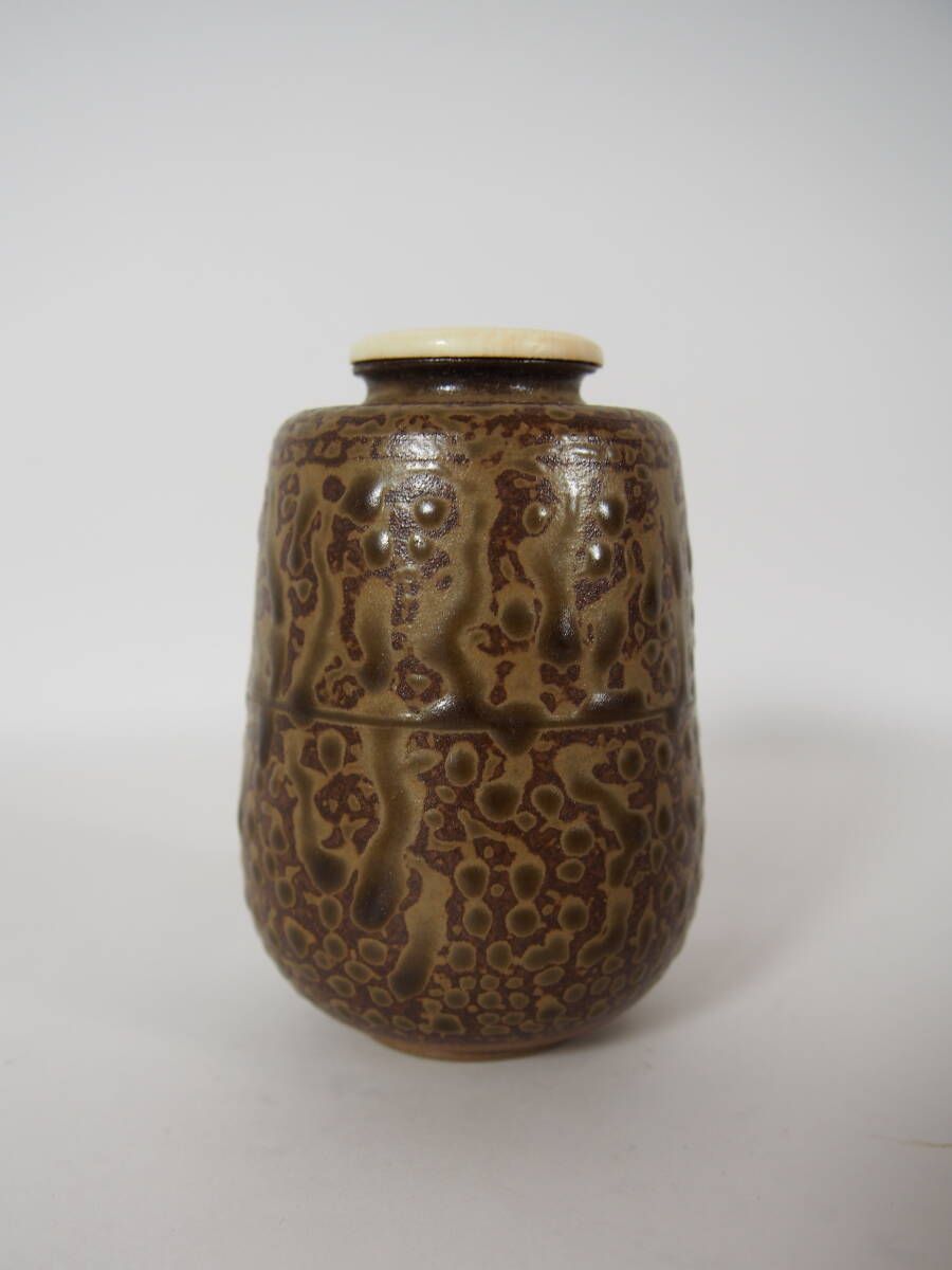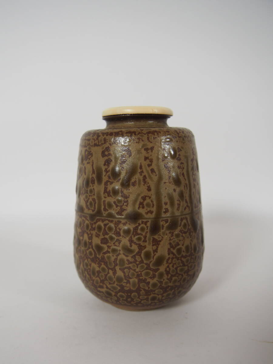 鬼丸雪山 高取焼 茶入 在銘 共箱 桐四方桟 由来書 茶道具 N-93
