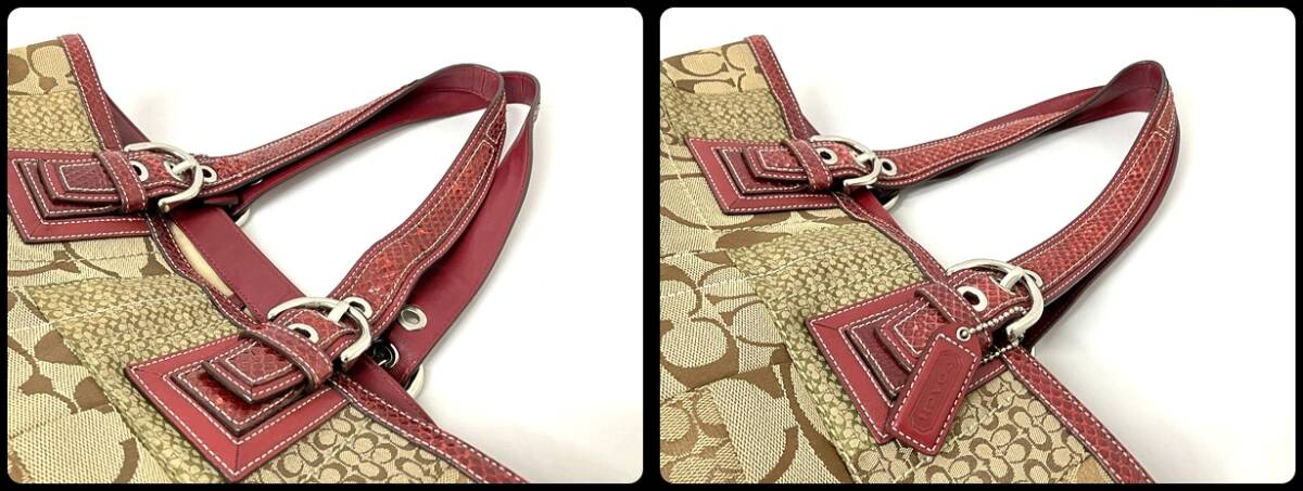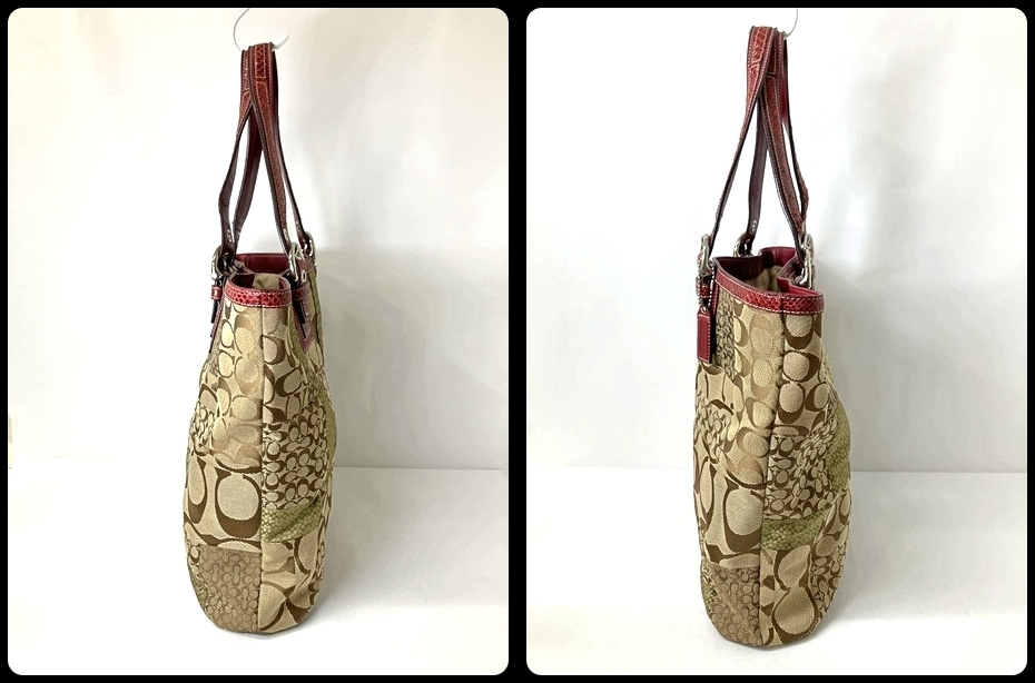 【即決】COACH コーチ シグネチャー パッチワーク トートバッグ パイソン キャンバス ボルドー 縦長 A4サイズ 10089