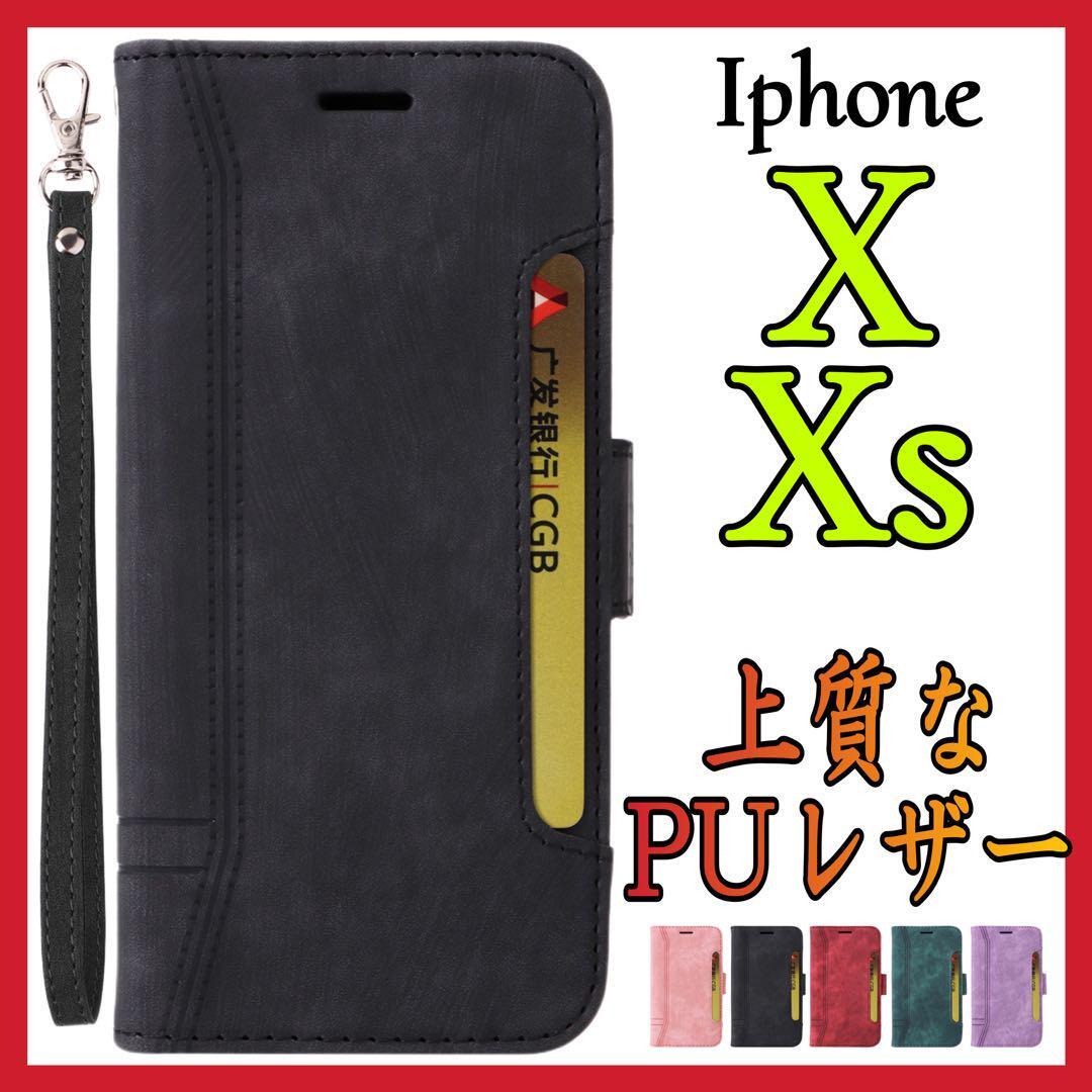 IphoneX IphoneXsケース 手帳型 黒 高級デザイン お洒落 上質PUレザー アイホンXアイホンXsカバー ブラック スピード発送 耐衝撃 カード収納 男女兼用 手帳型ケース スタンド機能 マグネット 軽量TPU 収納力 横置き機能 レンズ保護 落下防止 人気