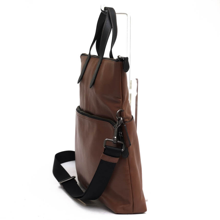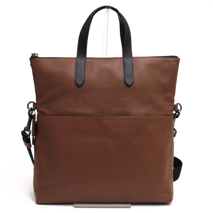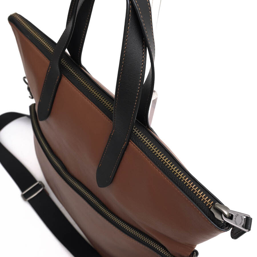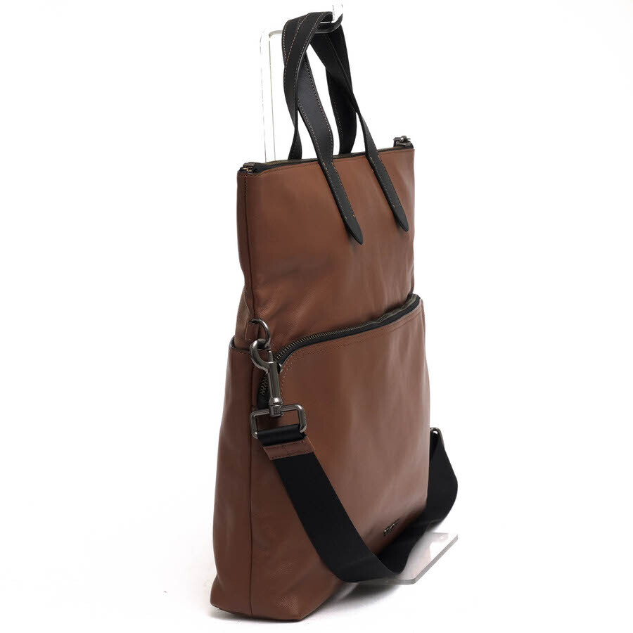 | しなやかなスムースカーフ素材に、コーチのブランド金具がアクセントになったモデル。ファスナー開閉のメイン収納には、A4サイズの書類も縦にしっかり入り、折りたたんでメッセンジャーバッグのようにしても使えます。 |