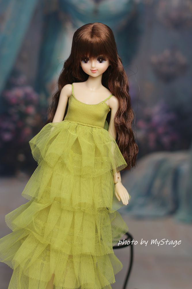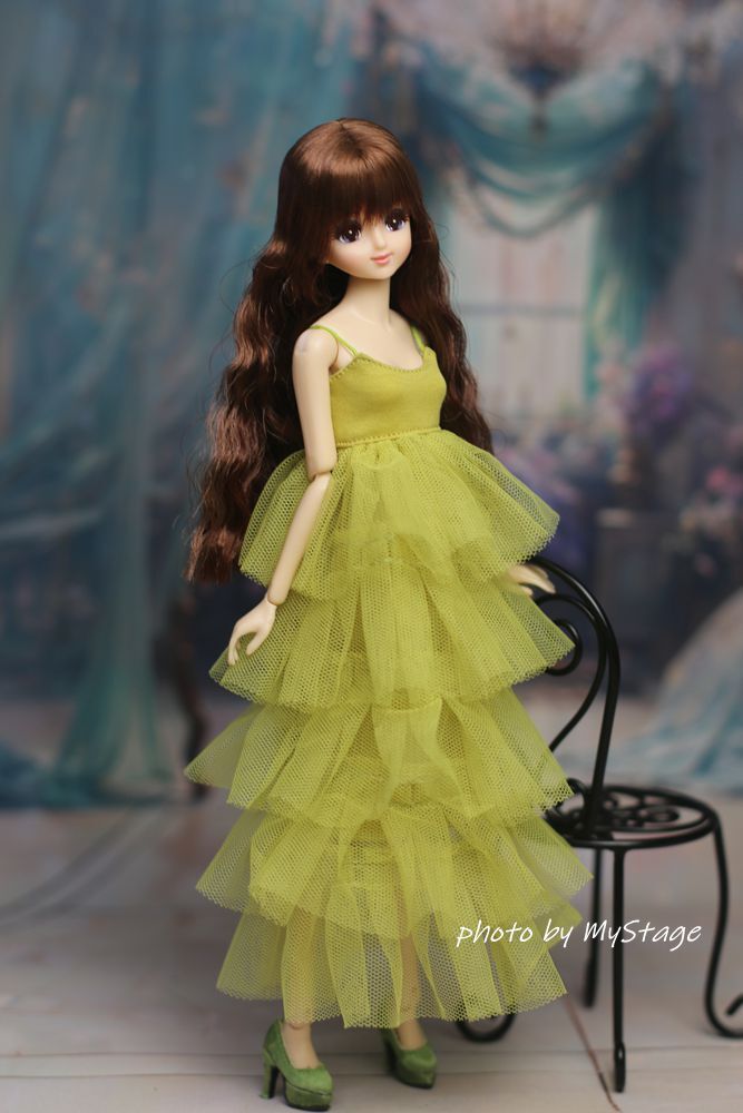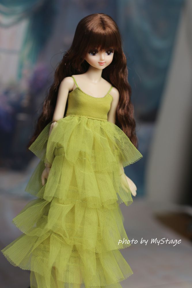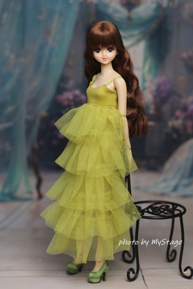 人形服msdr-24-298 萌黄色五段フリルチュールキャミワンピース (momoko、ジェニー、SAJボディ、OBITSUボディ)