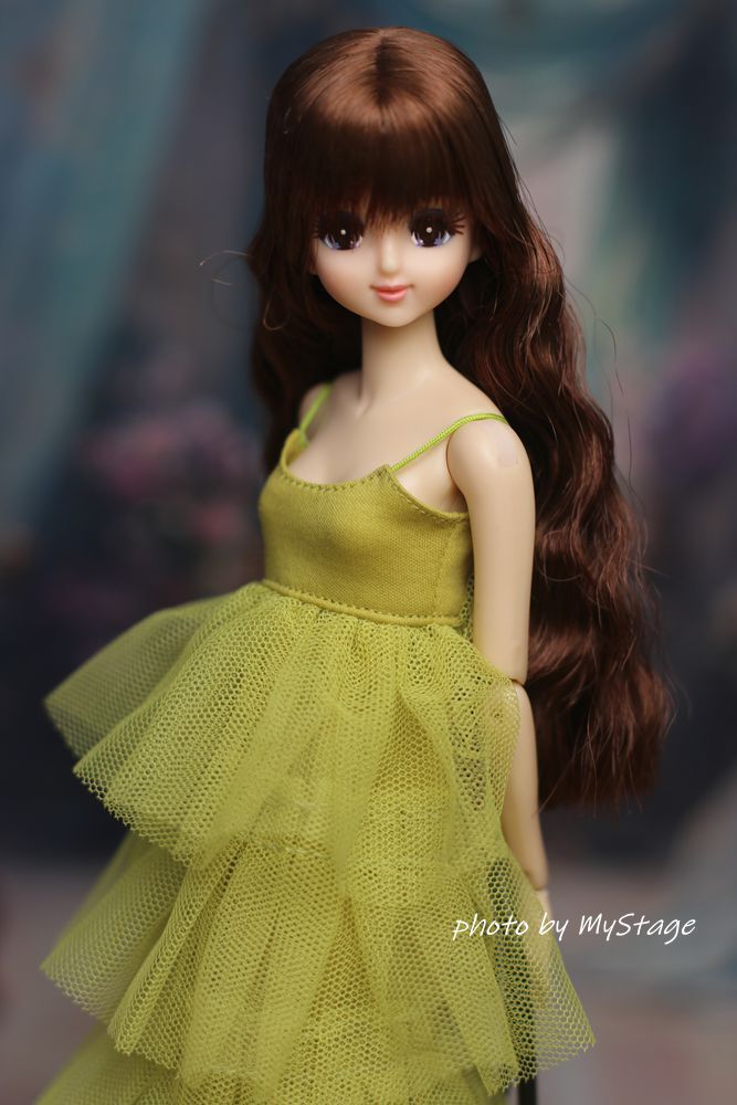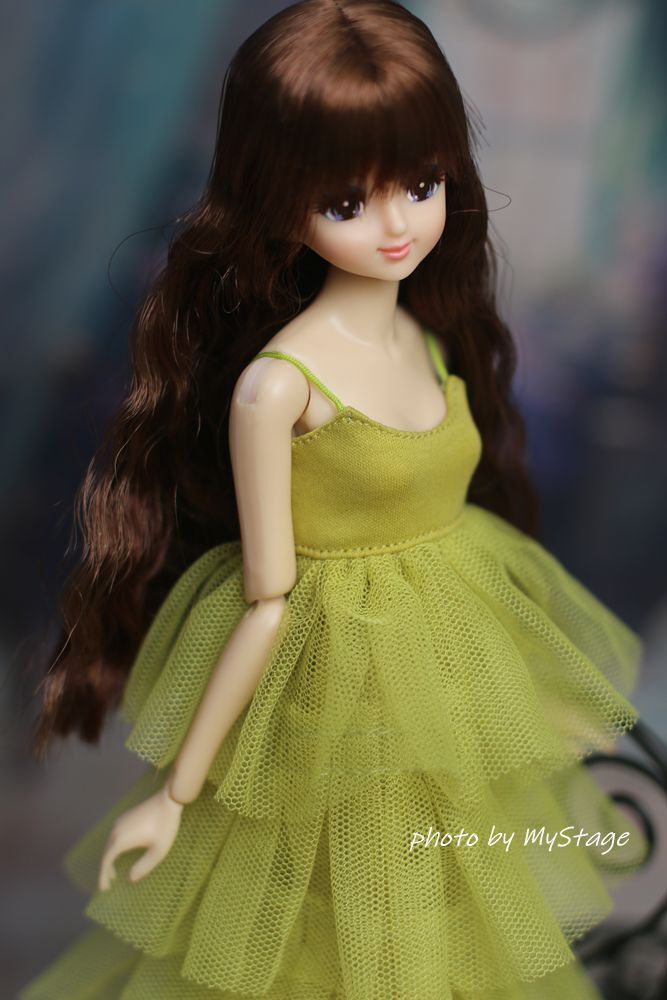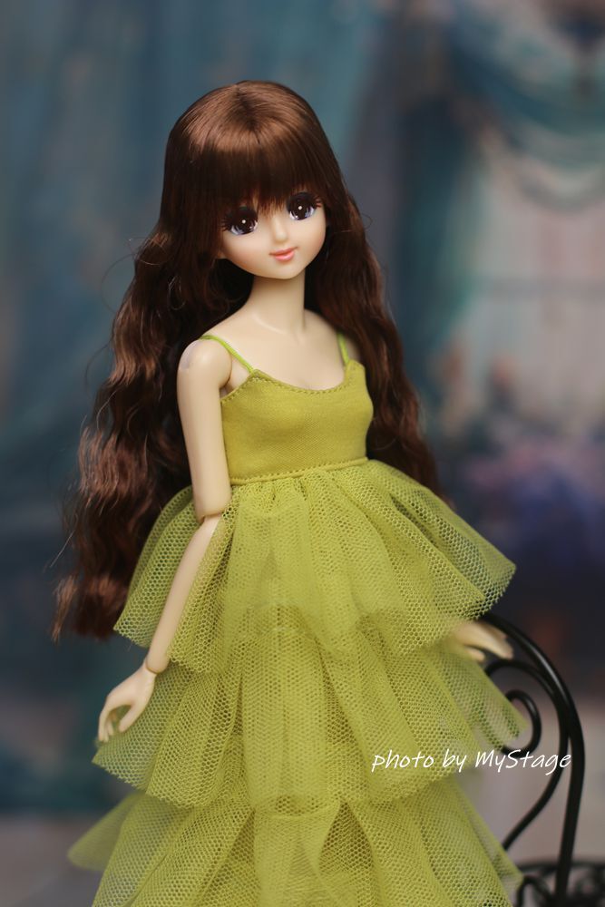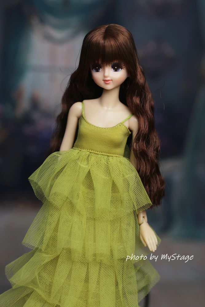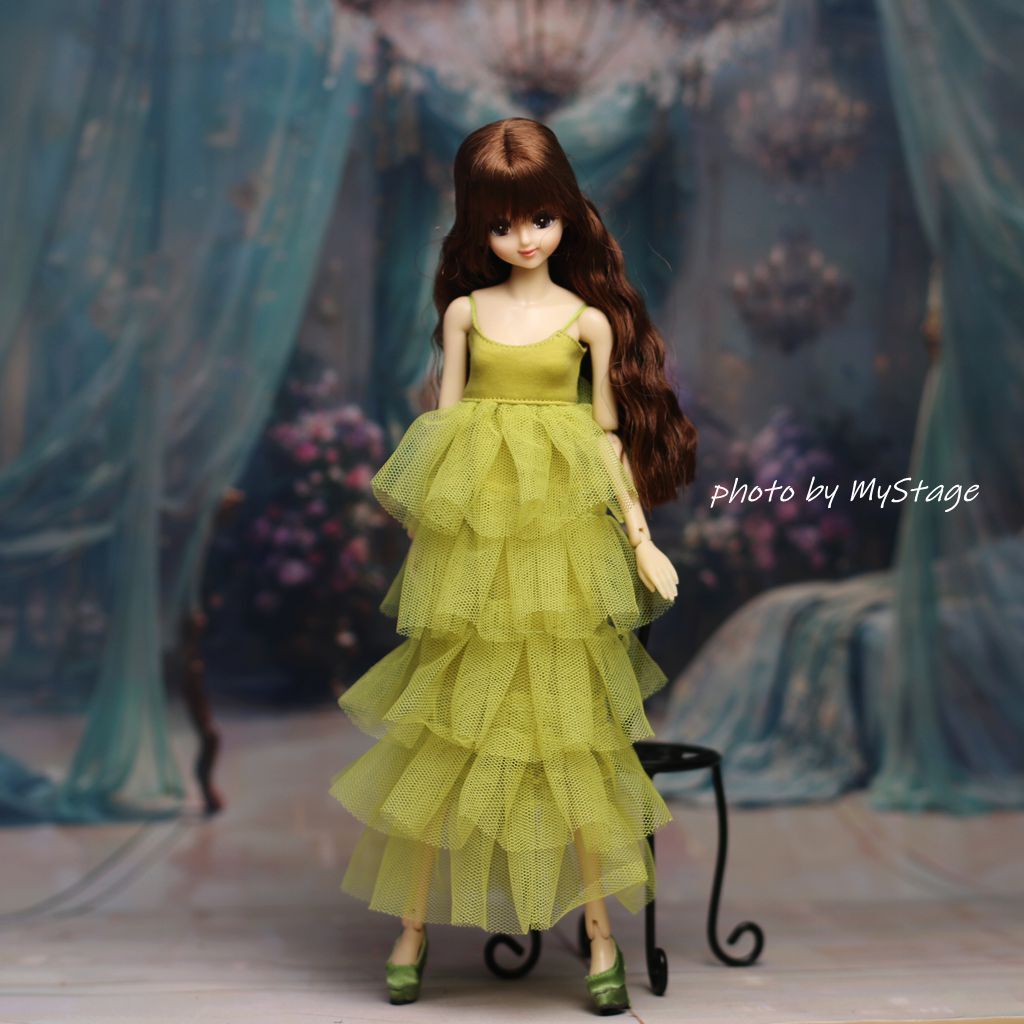 人形服msdr-24-298 萌黄色五段フリルチュールキャミワンピース (momoko、ジェニー、SAJボディ、OBITSUボディ)