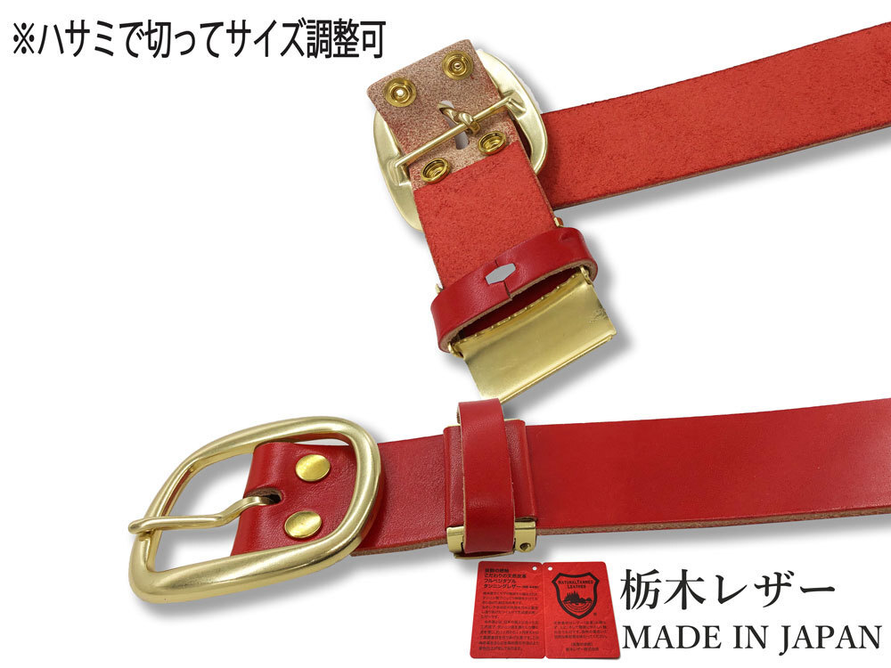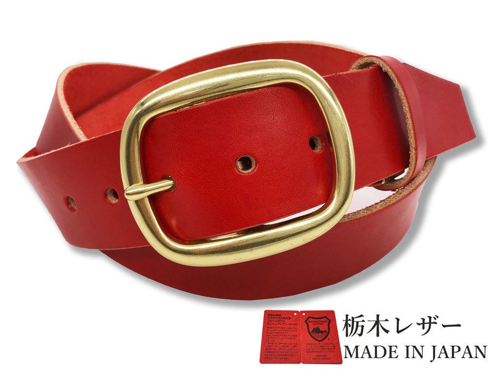 新品 栃木レザーベルト 本革 牛革 ロングサイズ メンズ レディース レッド アカ 国産 レザー 無地 40mm カジュアル ベルト W043RDL