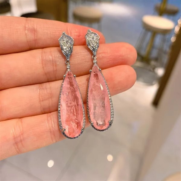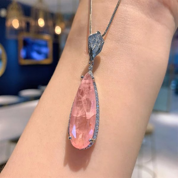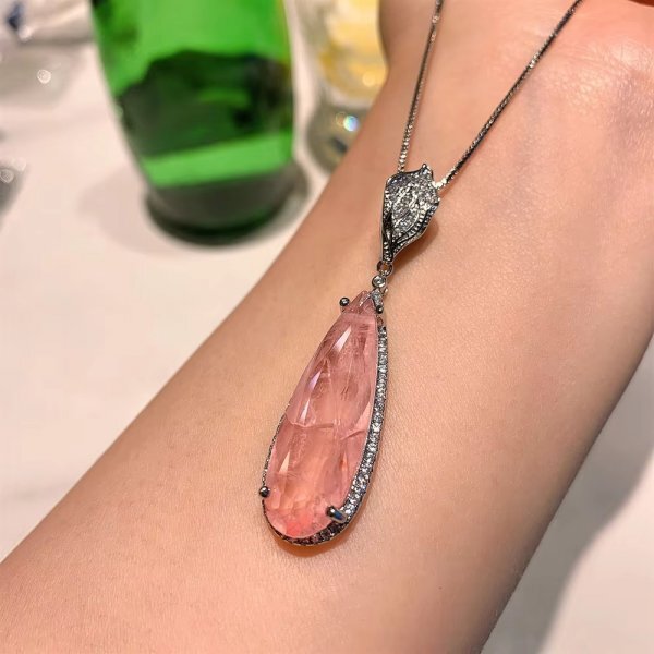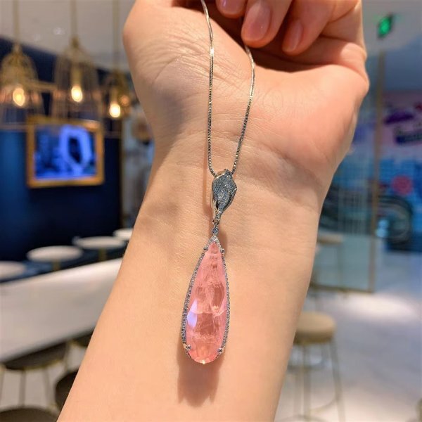 高級ジェムストーンジュエリーセット、ピンククリスタル、925スターリングシルバー