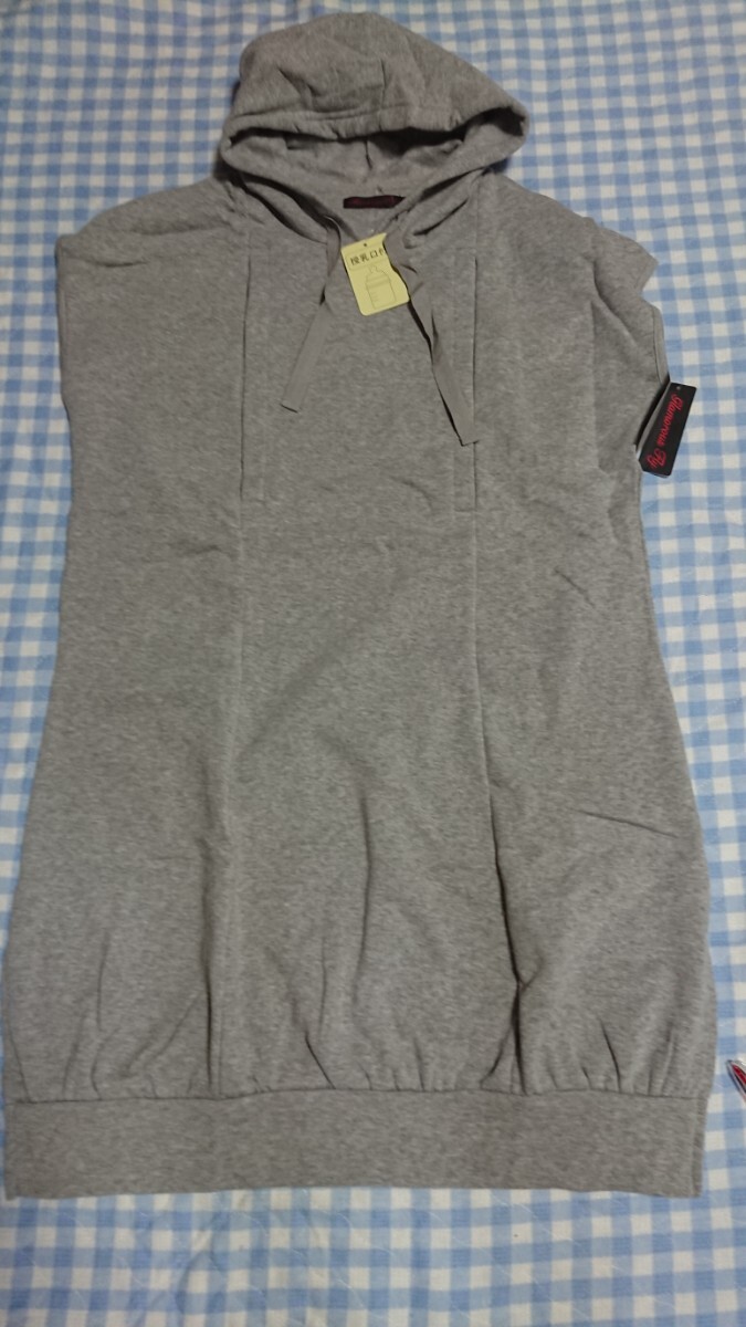 〇445☆未使用・保管品・難あり☆授乳服☆裏起毛ロングベストチュニック М灰
