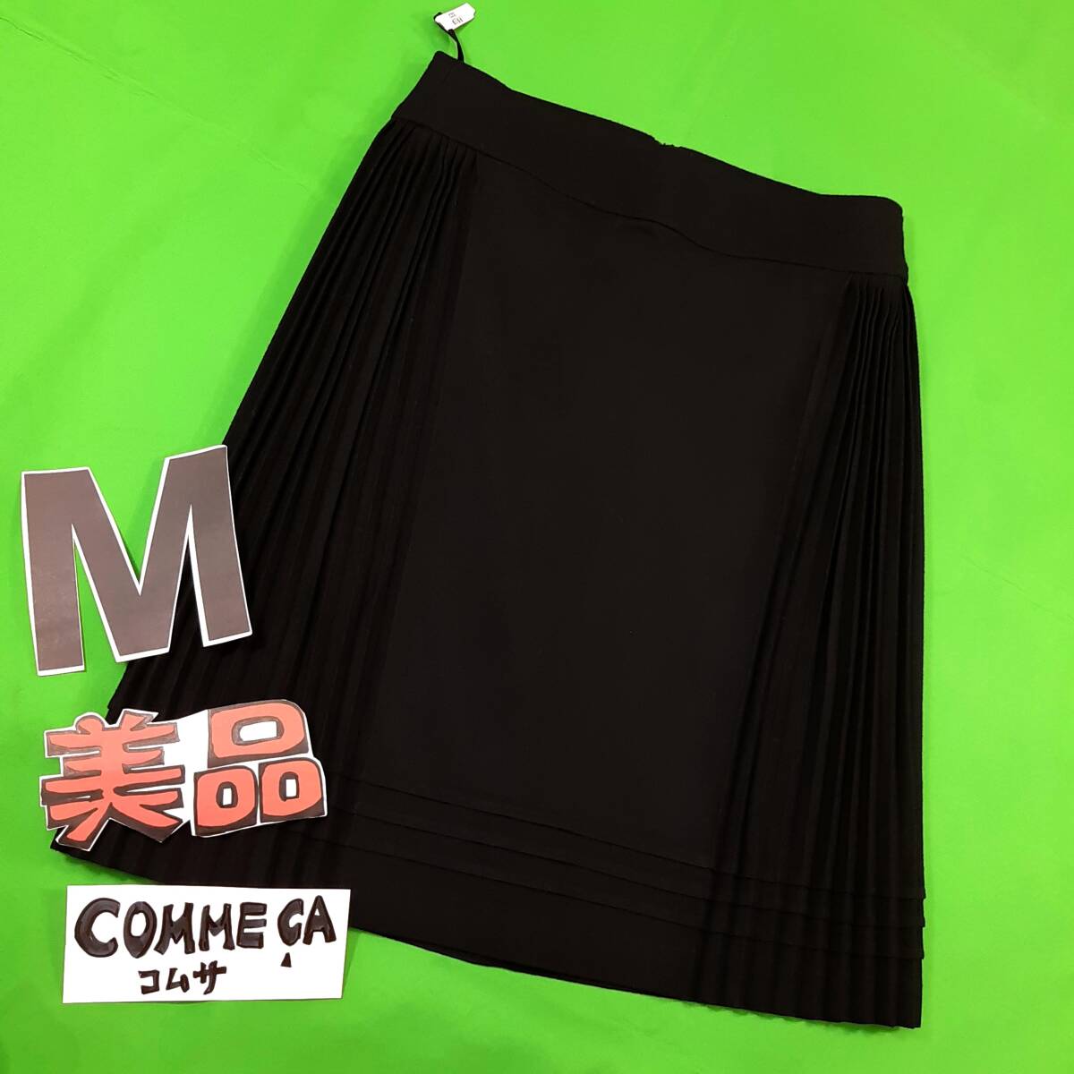 d5 美品 送料無料★comme cA du Mode コムサ・デ・モード★上質ウール プリーツ加工 膝丈スカート★Mサイズ ブラック黒色 キレイめ 秋冬