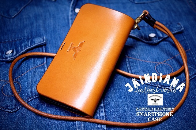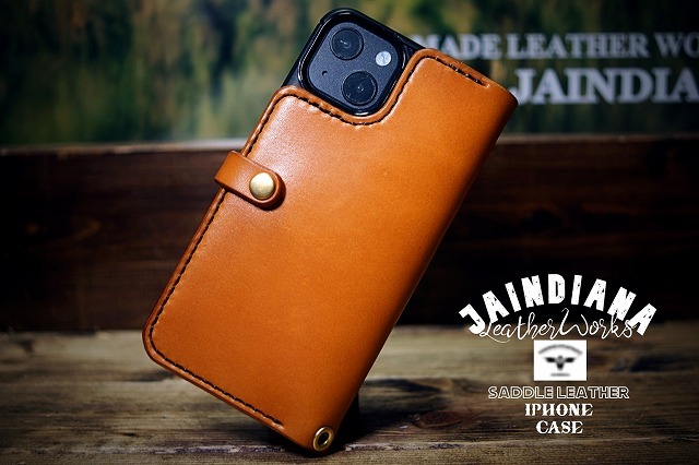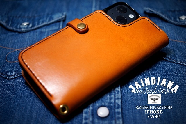 | iPhone16ケース 手縫い サドルレザー キャメル ネックストラップ付き (iPhone16pro,16proMax,16Plus仕様での製作も可) | ||||