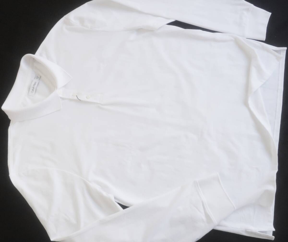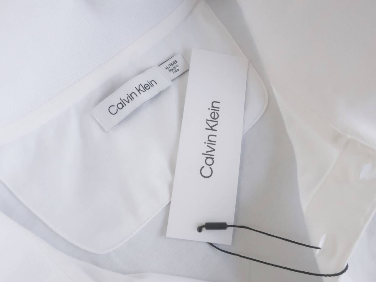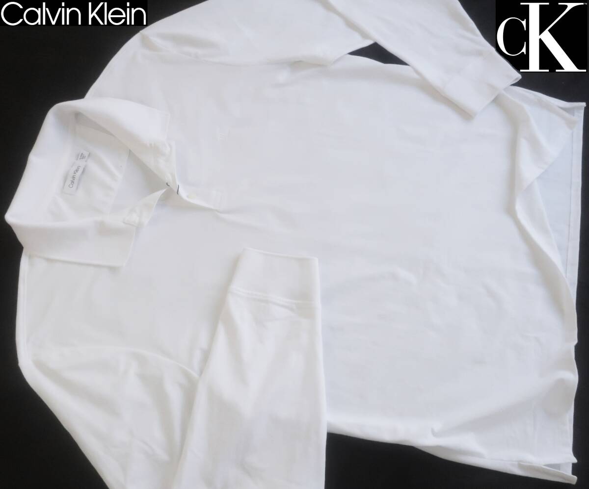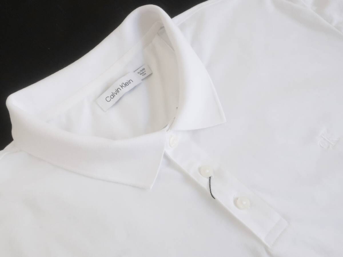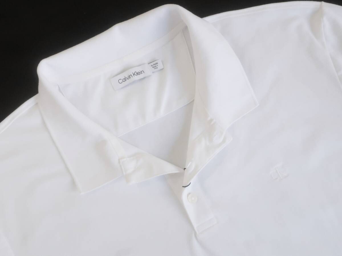 新品★カルバンクライン★大きいサイズ★ホワイト ニットシャツ★長袖 ポロシャツ★ロゴ刺繍 白 XXL★CALVIN KLEIN CK★706