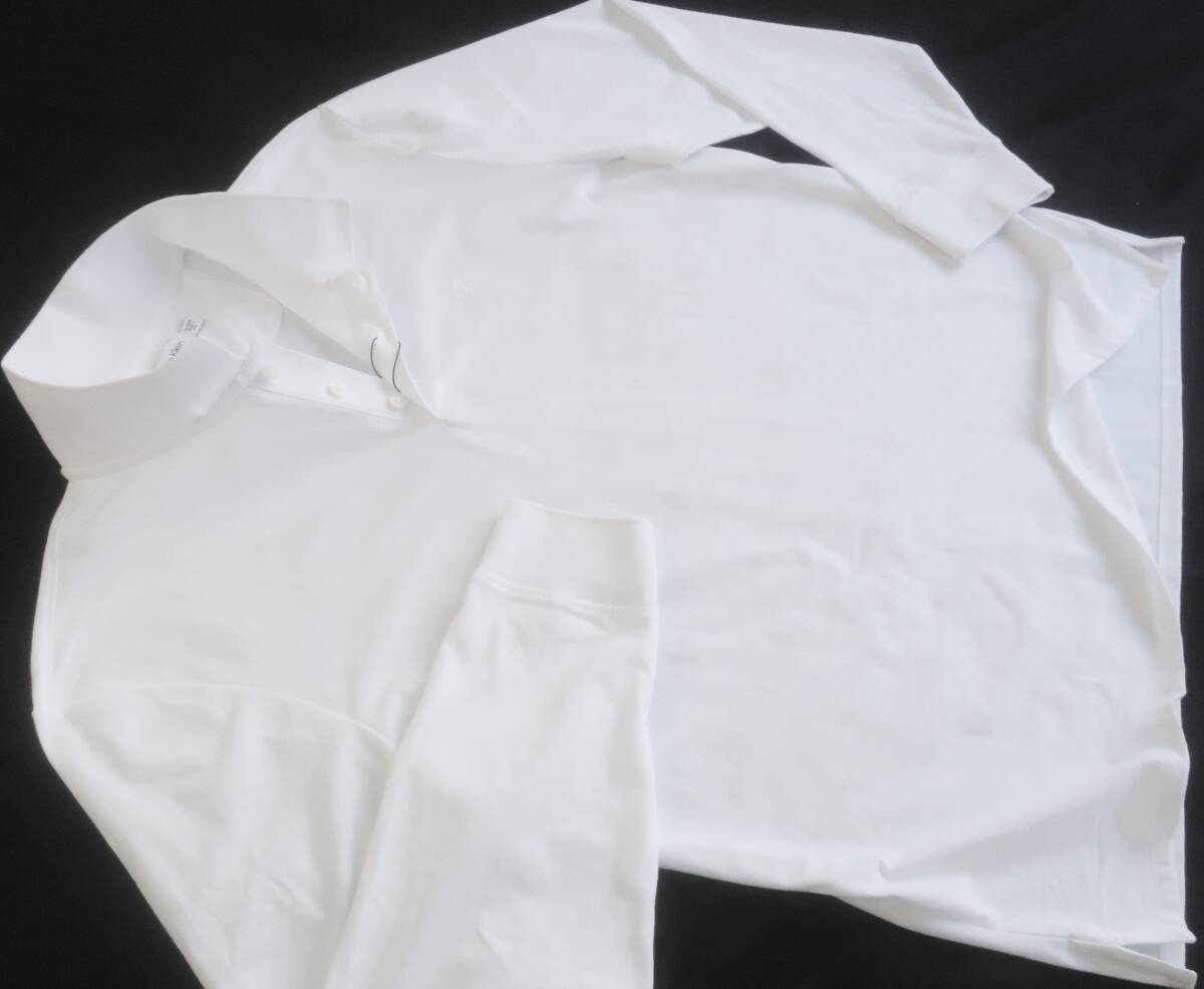 大変シンプルで爽やかなホワイト長袖ポロシャツですので、
