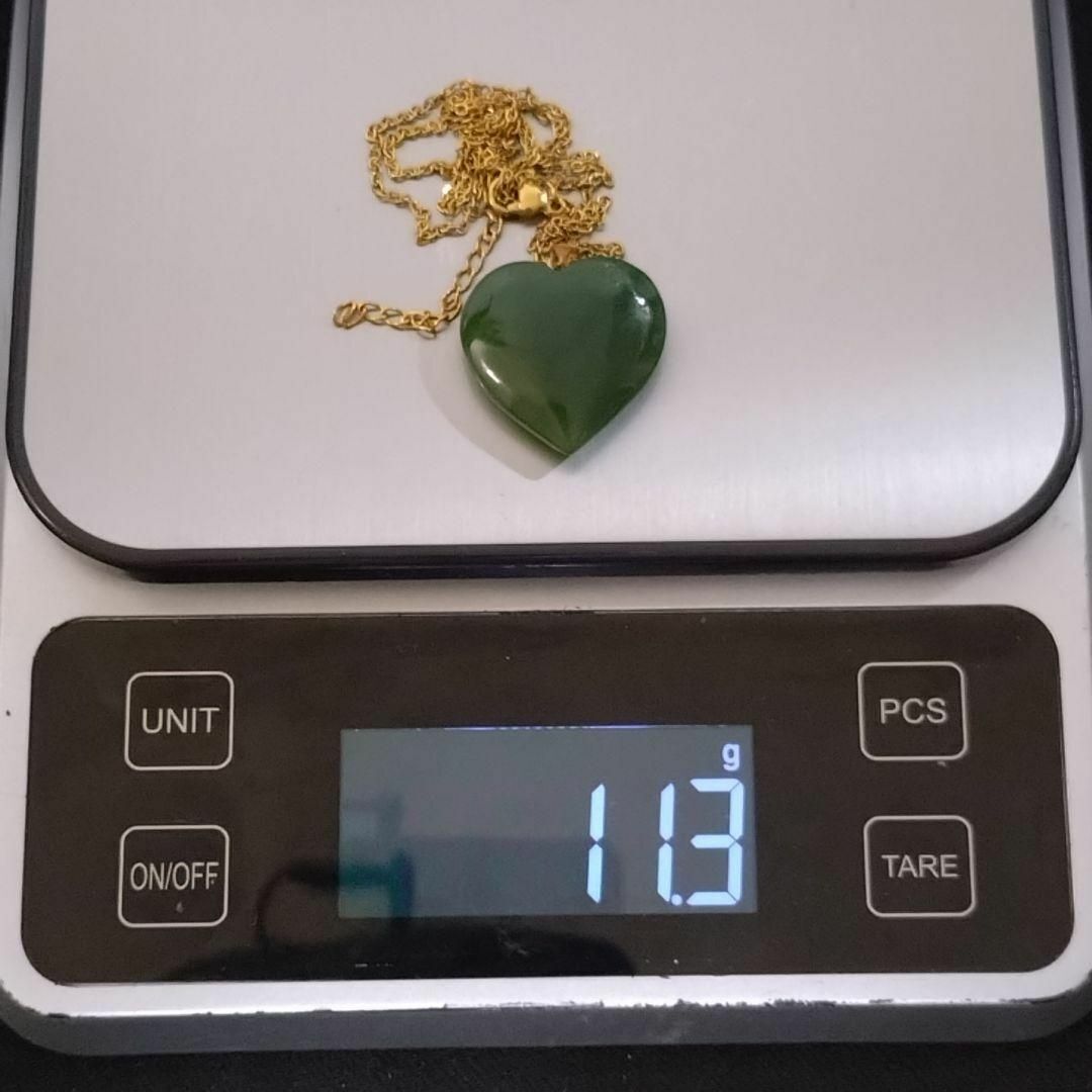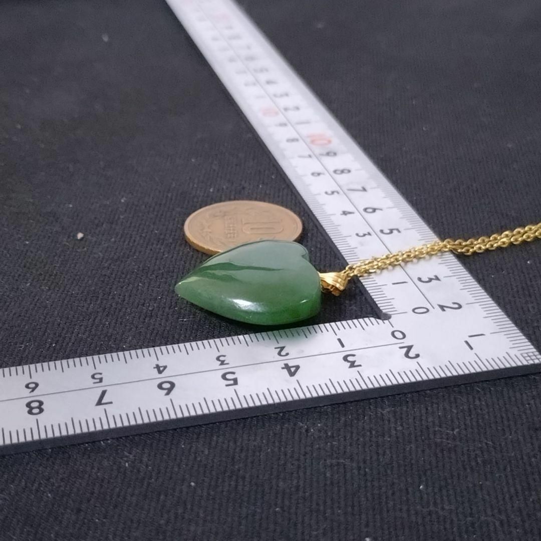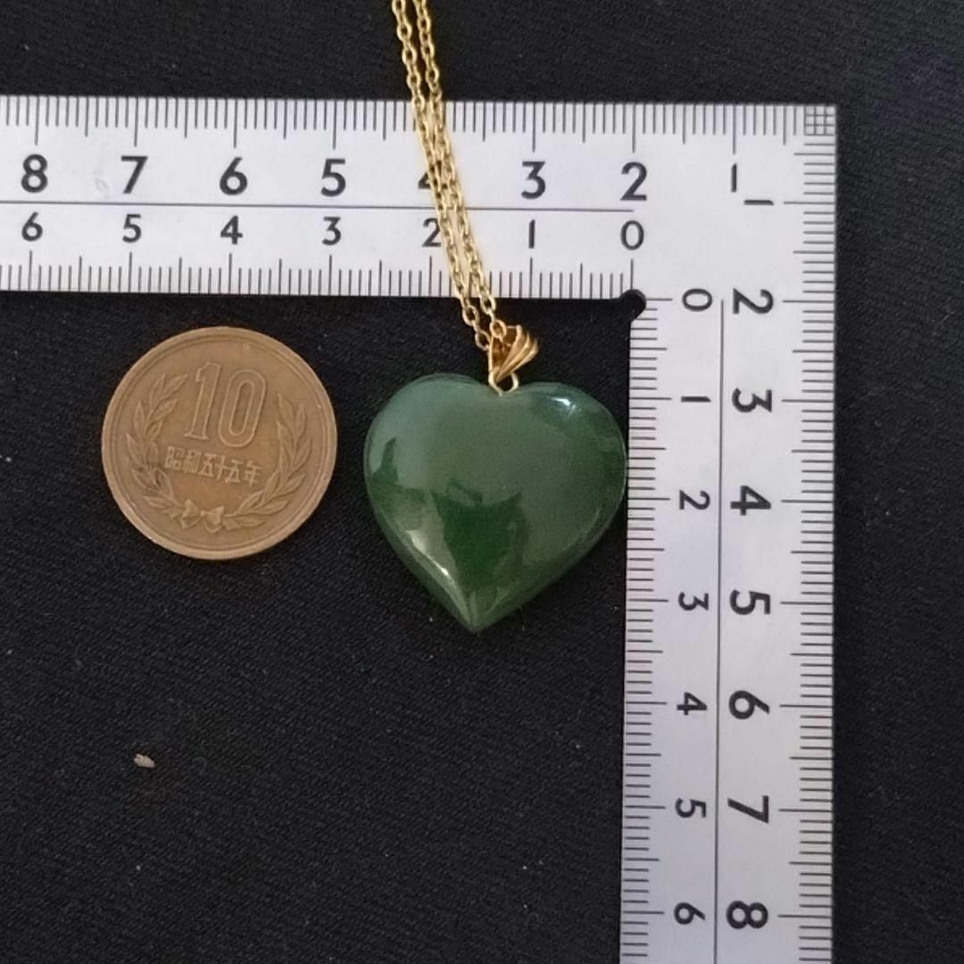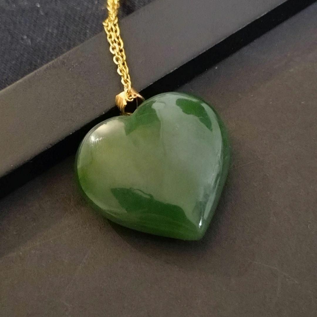 深い緑の美しい翡翠(ネフライトジェイド)をハート型にした可愛らしいネックレス、ペンダントです!