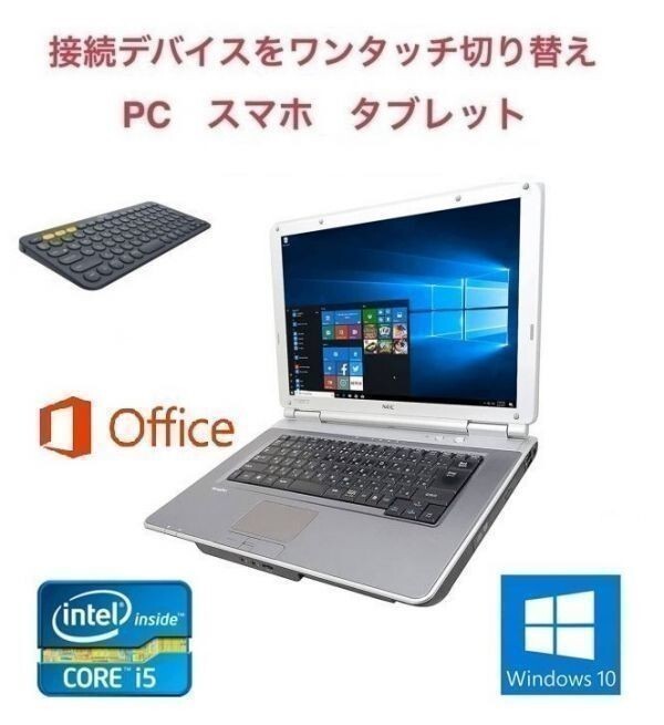 【サポート付】NEC Vシリーズ Windows10 PC 新品SSD:128GB 新品メモリー:4GB Office 2019 & ロジクール K380BK ワイヤレス キーボード