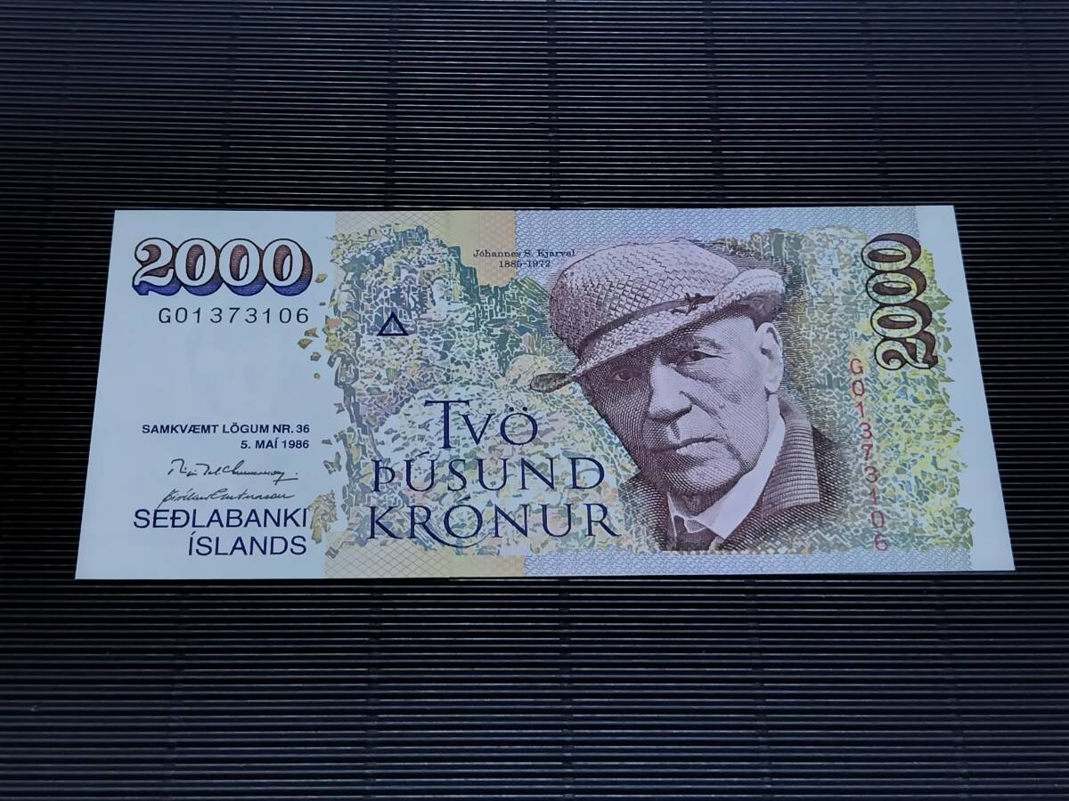 アイスランド 2000 Kronur札 1986年 未使用~甘い未使用 sig.B. I. Gunnarsson & Eirkur Gunason p-57a #G01373106