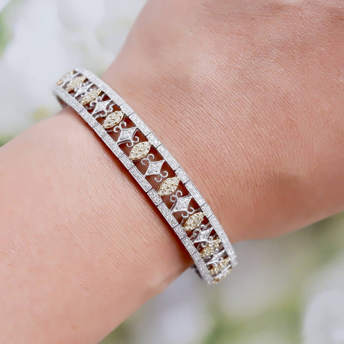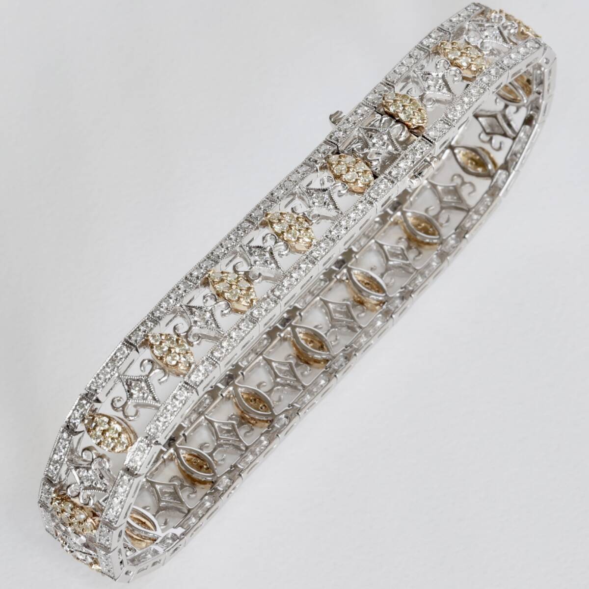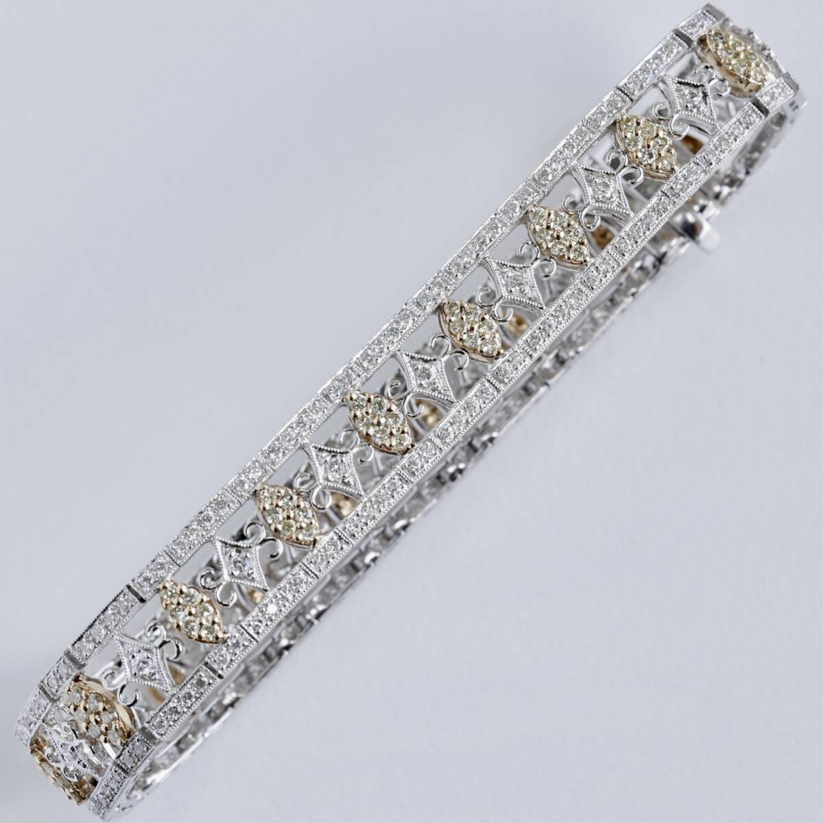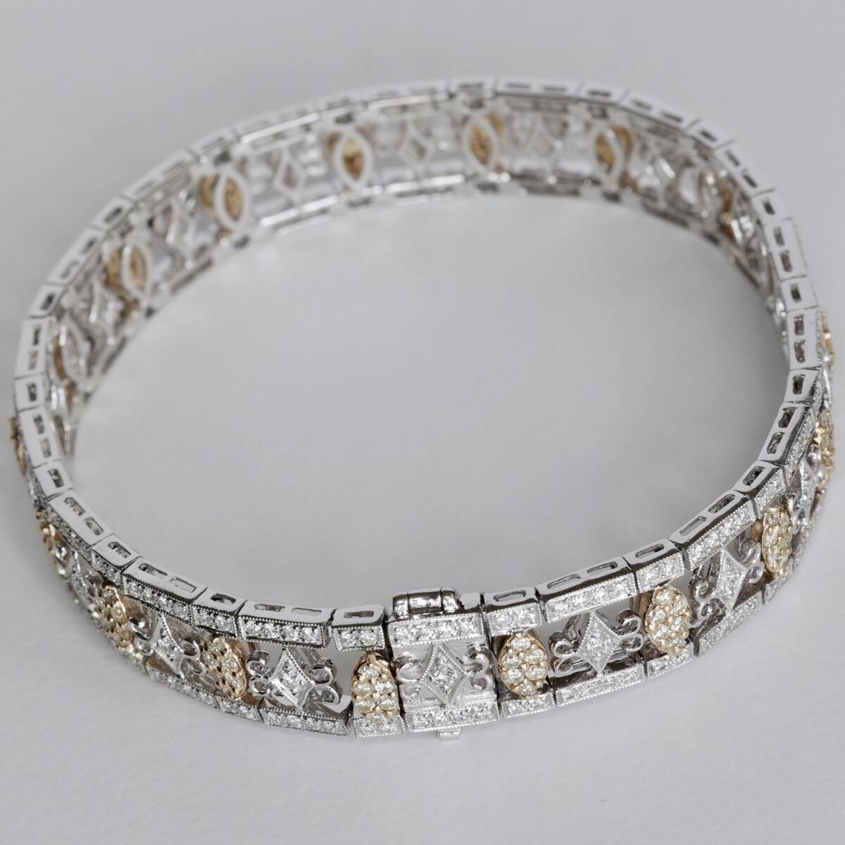 K14 WG YG NATALIE K ダイヤモンド 2.88ct ブレスレット アメリカ製 ミル打ち コンビ 彫金 ナタリーK デザイナーズジュエリー