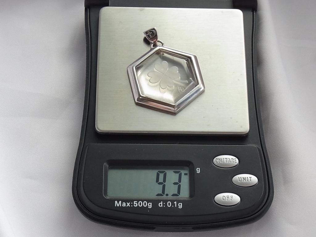 銀製 SV925 SILVER シルバー x ガラス 四つ葉のクローバー モチーフ ペンダントトップ/USEDです。