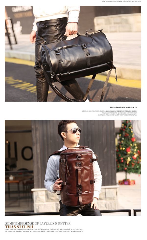 新品★メンズ レディース ユニセックス 男女兼用 ボストンバッグ リュック 大容量 防水 PUレザー 春夏秋冬DJ287