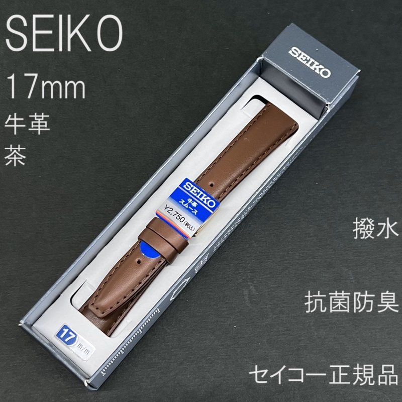 送料無料 バネ棒付★特価 新品★SEIKO 時計ベルト 17mm 牛革バンド 茶色 ブラウン 抗菌防臭 撥水★セイコー正規品 定価税込2,750円