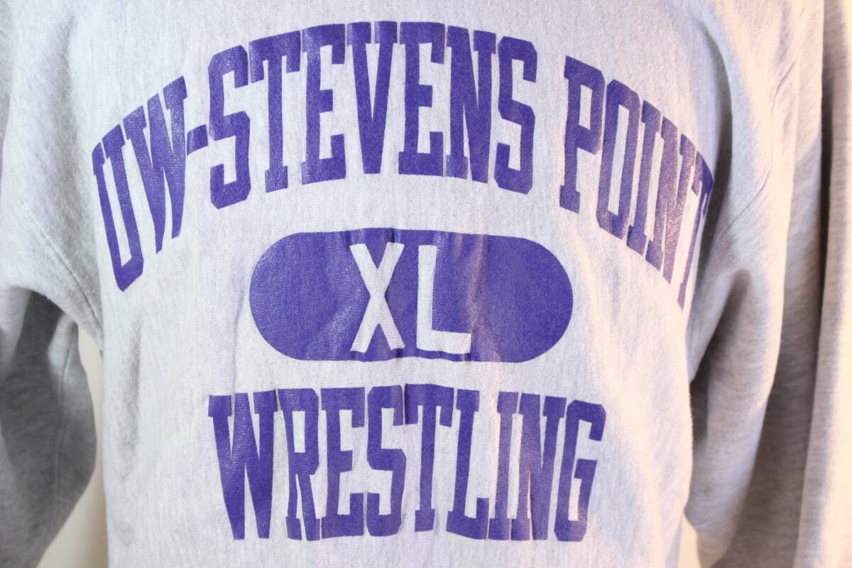 ウィスコンシン大学スティーブンスポイント校のレスリング部のチャンピオンリバースウィーブトレーナーです。