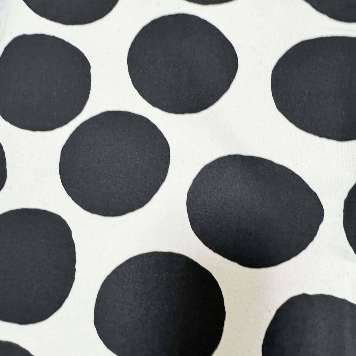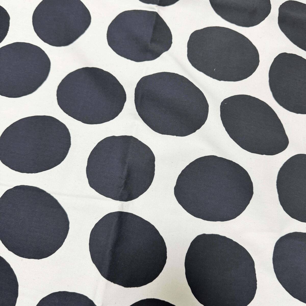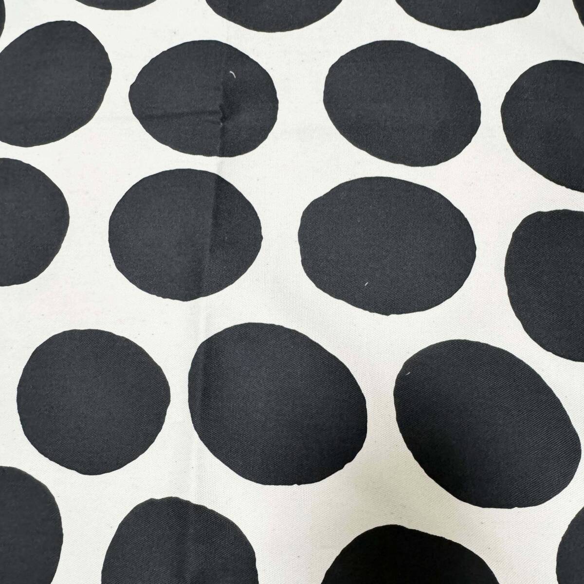 1m 手書き風ポルカドット生成り地にブラック黒ランダムドット水玉オックス生地★布