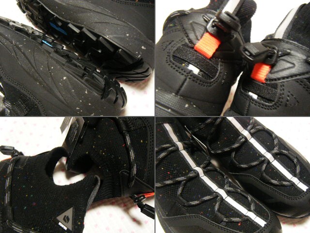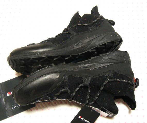 アッパーには伸縮性と通気性のあるニット生地を採用し、踵に配置されたコードトッパーで調整するイージーシューレースシステムでフィット感を調整。 また、COREBLADEのアウトソールが地面をグリップし、突き上げ感の少ない履き心地を実現したアウトドア&カジュアルスポーツ用高機能高性能シューズ・スニーカー。         モデル名   BONFIRE  RE.IGNITE  SHOES     表記カラー   ブラック色