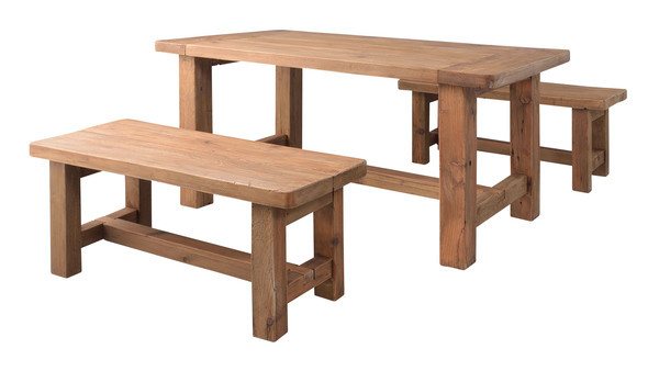 ダイニングテーブル 天然木(パイン古材) 水性塗装 ブラウン WE-887