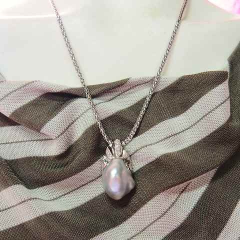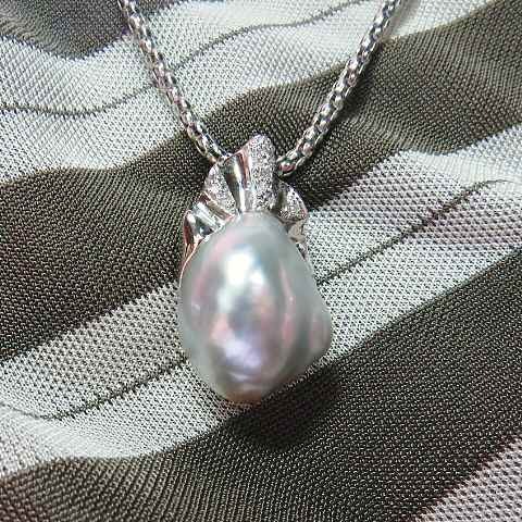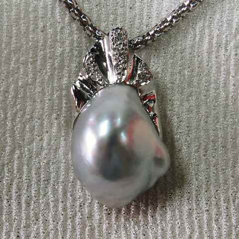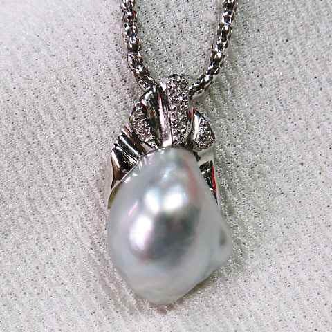 白蝶真珠&ダイヤ☆プラチナ製ペンダントネックレス☆