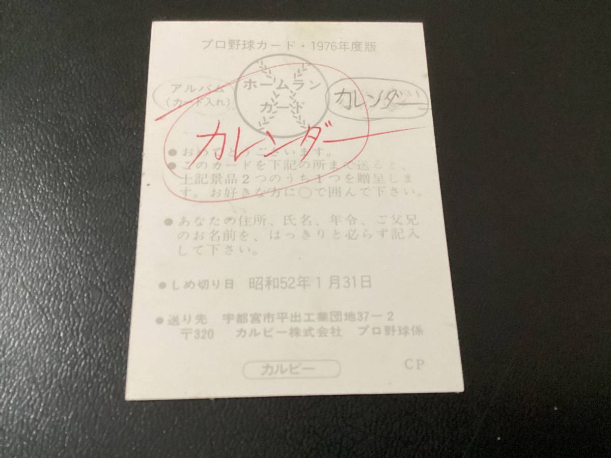 ホームランカード カルビー76年 河埜(巨人)No.1006 プロ野球カード