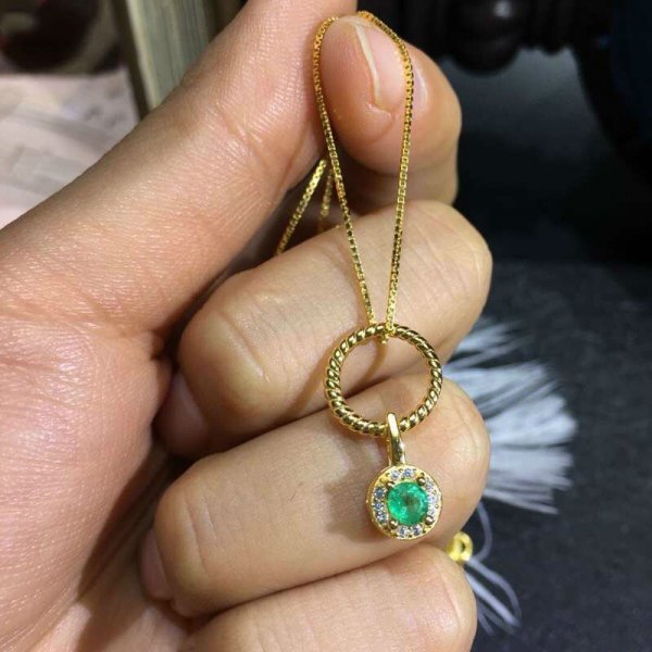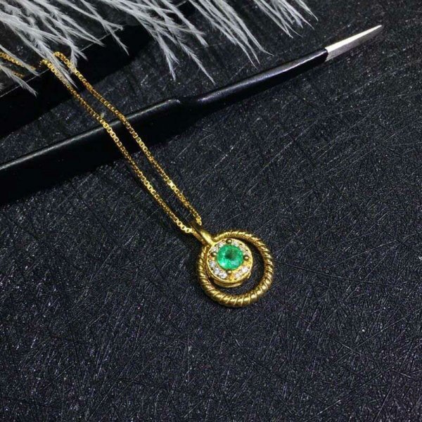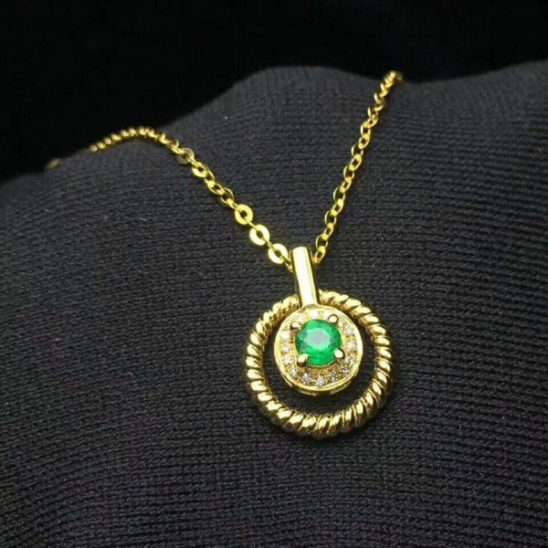 【証明書付き】 女性用ナチュラルエメラルドペンダント付きネックレス、925スターリングシルバー、ウェディングジュエリー