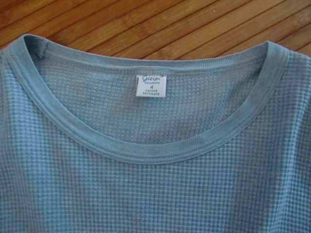 送料無料 イタリア製 GICIPI ジチピ 4 M サックス 水色 サーマル ニット Tシャツ カットソー ニットソ ワッフル 長袖 ロンT ロングスリーブ