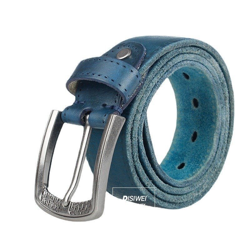 新品レザーベルト 本革 牛革 メンズ ベルト 一枚革 ピンバックル式 革ベルト ゴルフウェア 紳士用 長さ選択可能 青
