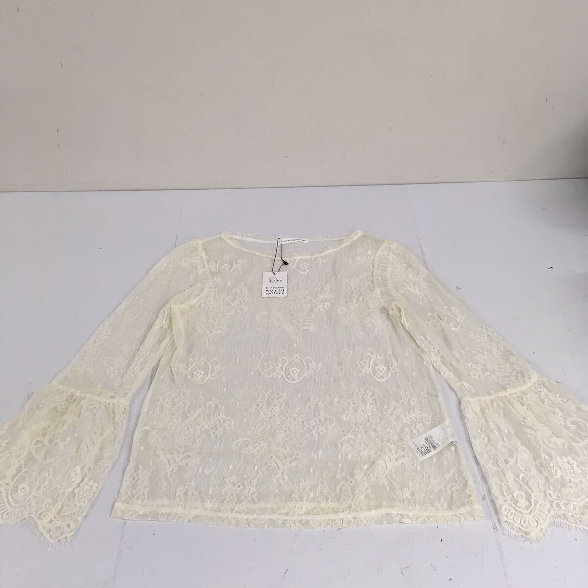 送料無料★新品タグ付き★E hyphen world gallery★フレアスリーブレースプルオーバー★フリーサイズ★長袖シャツ#61017sax