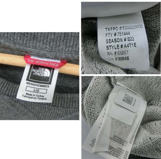 THE NORTH FACE トレーナー Lサイズ A4T1E グレー ロゴ スウェット ザ ノースフェイス コストコ商品 レタパ対応 札幌 西野店