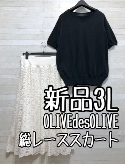 新品☆3L♪お出かけにも使えるOLIVEdesOLIVE総レーススカート♪☆f217