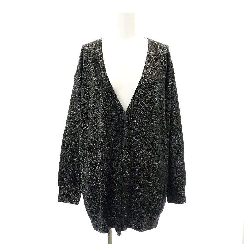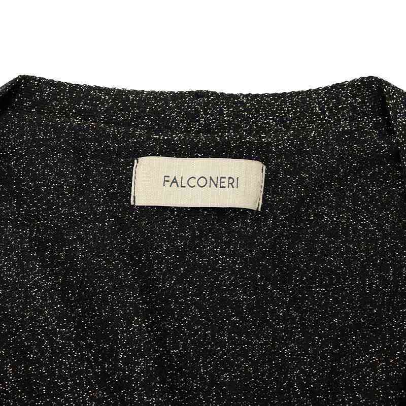 ファルコネーリ FALCONERI ラメフリルカーディガン ニット 長袖 Vネック XS 黒 ブラック /AT ■OS レディース