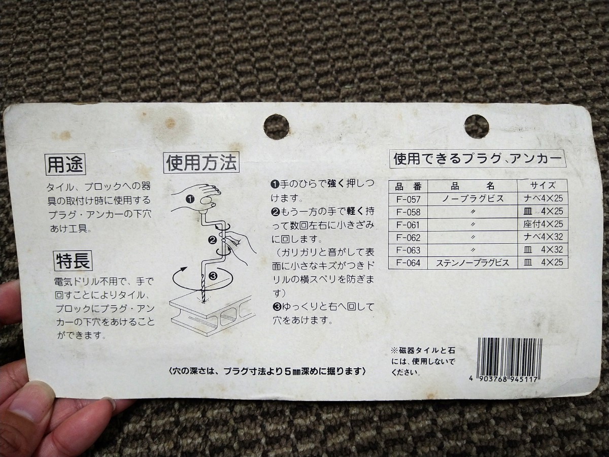 ジャンク品/長期保管品/ハンドドリル/下穴径4.8mm/電気ドリル不要/手動手回し