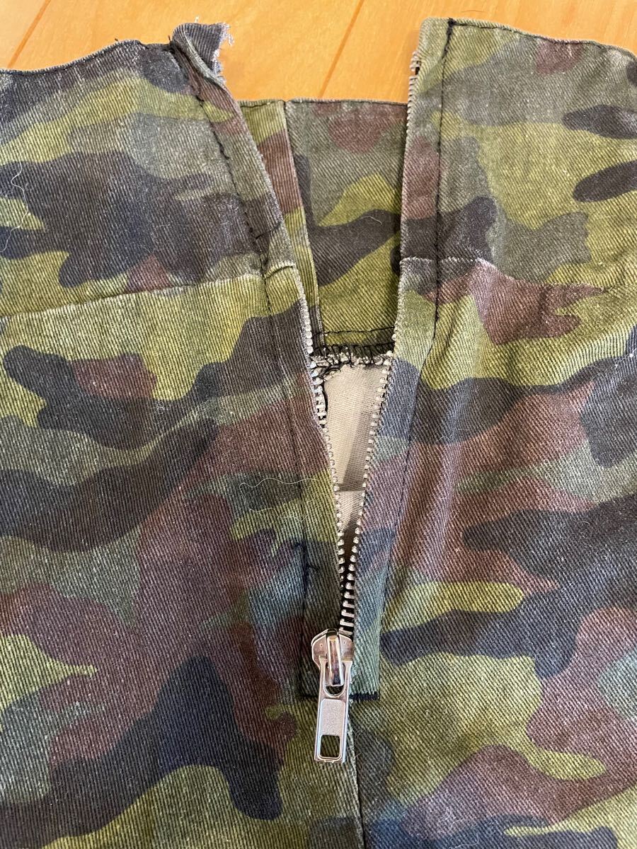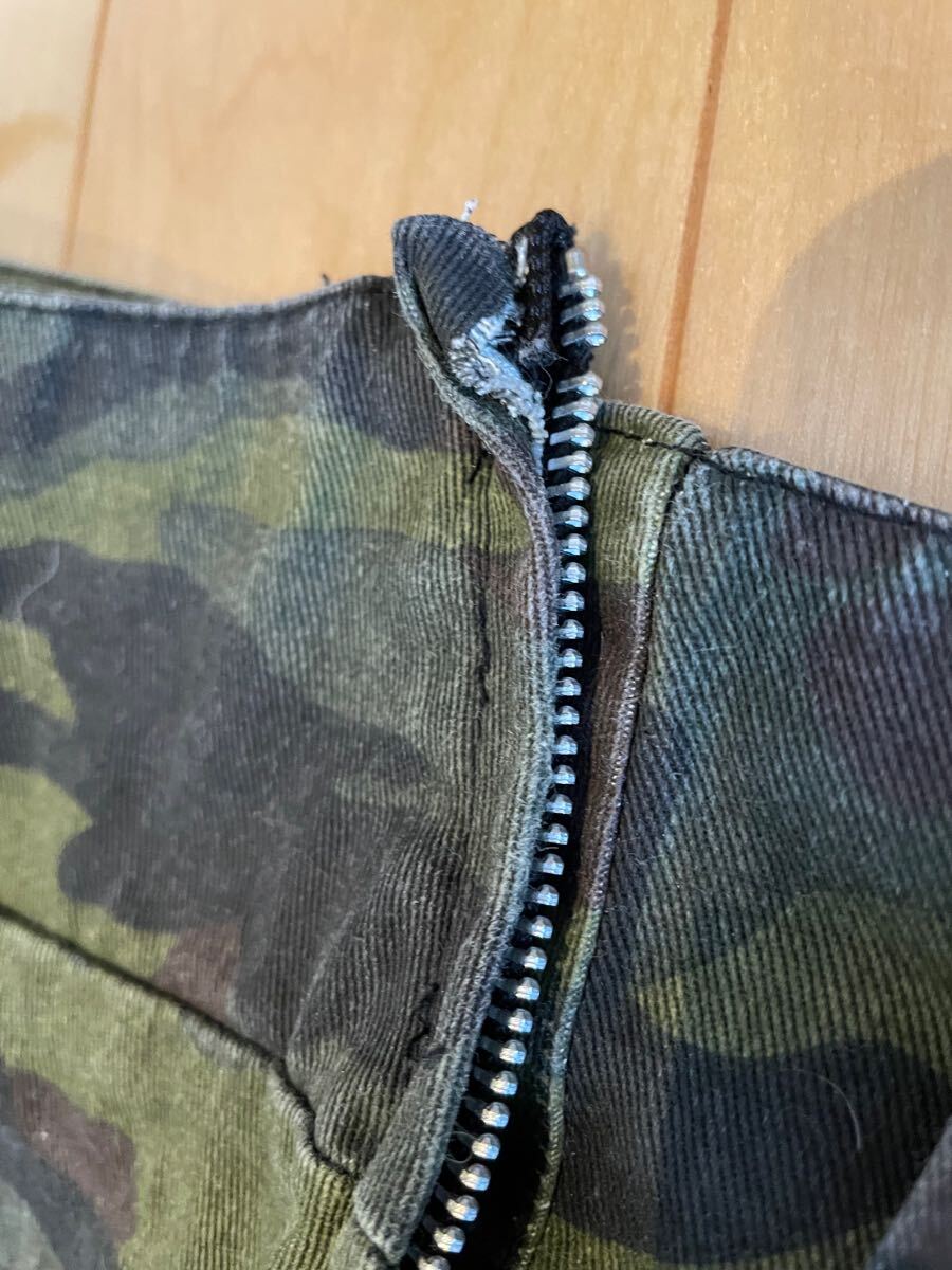 中古品で、ウエストのファスナーが破損しているため、補修可能でしたら、ご活用いただけると嬉しいです。ファスナー上部に少しほつれがあります。