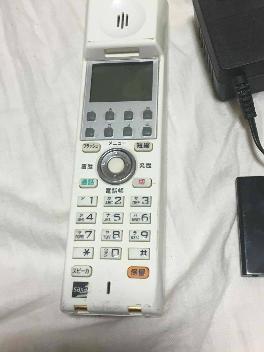 訳アリ理由:①中古のため、傷・汚れ・焼け等あります。②未清掃のため、汚れがあります。(磨いていただきますと、綺麗になりますが、焼けは取れません。)③アンテナ部分にプラスチック特有のヒビがあります。(画像ご参照・サクサのコードレス電話機の弱い部分です。)④電池の寿命は不明です。(充電はします。)