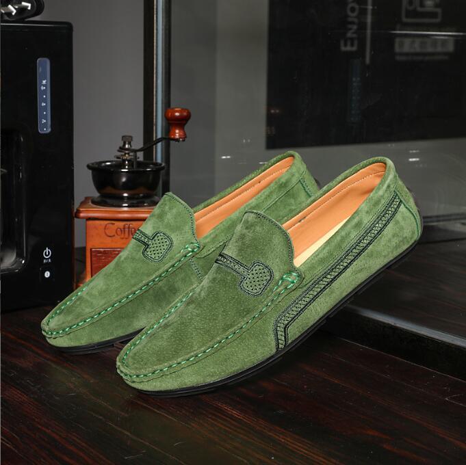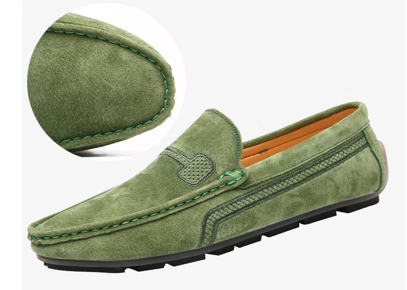デッキシューズ メンズスエードドライビングシューズ スリッポンローファーモカシン PUレザーシューズ 紳士靴シューズ24cm~28.5cm/グリーン