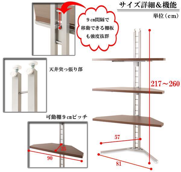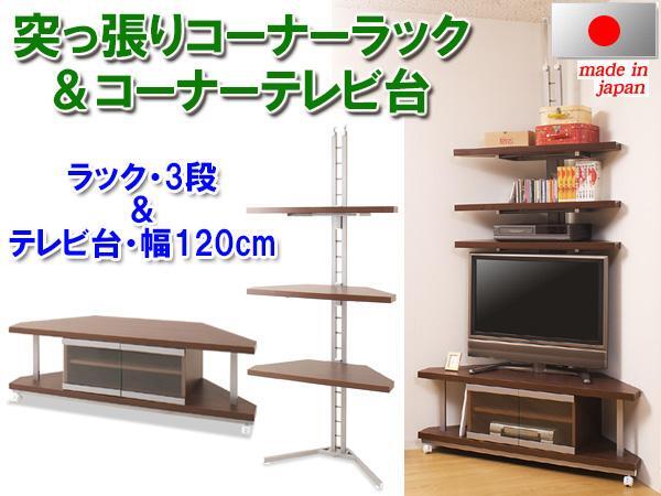 商品 突っ張りコーナーラック3段+コーナーテレビ台幅120cm