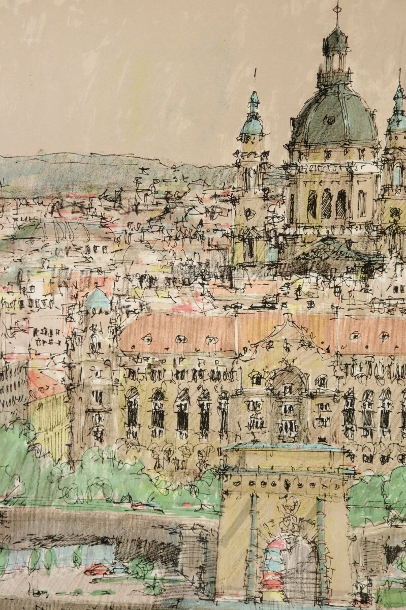 対岸に広がる旧市街には聖イシュトヴァーン大聖堂が描かれた