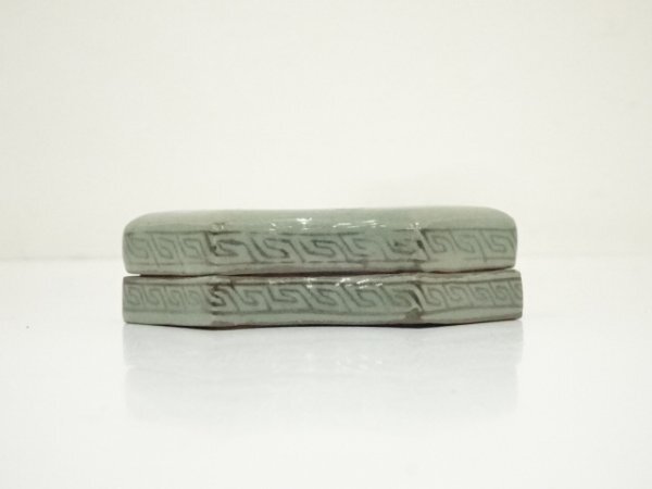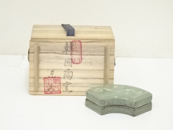 ys7109214; 韓国陶窯 東谷造 高麗青磁香合(共箱)【道】