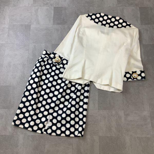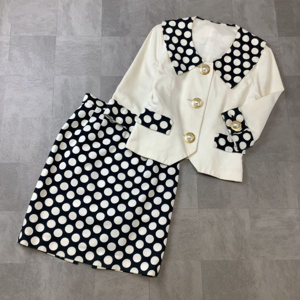 MAGGY SPORTS マギースポーツ ドット柄 スーツ 上下セットアップ スカートスーツ レディース 9号 ブラック ゴールドボタン