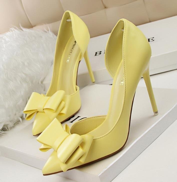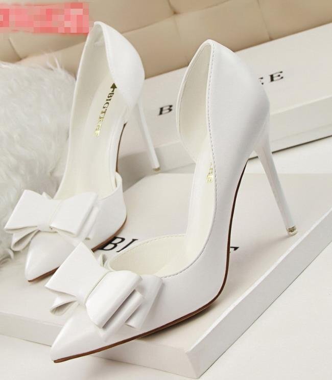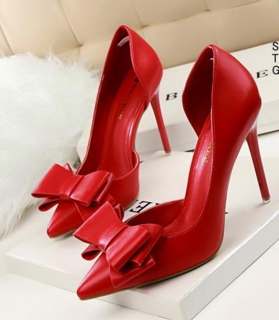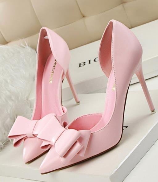 OHJ2508☆レディース ハイヒール  パンプス  美脚 インテッド シューズ  ピンヒール おしゃれ リボン付き 結婚式