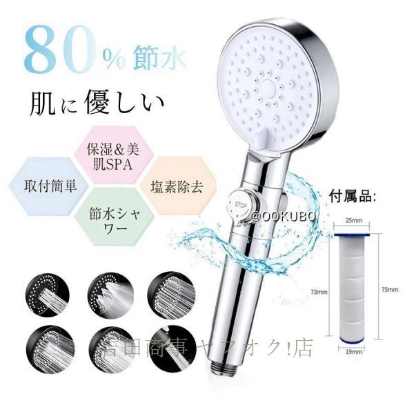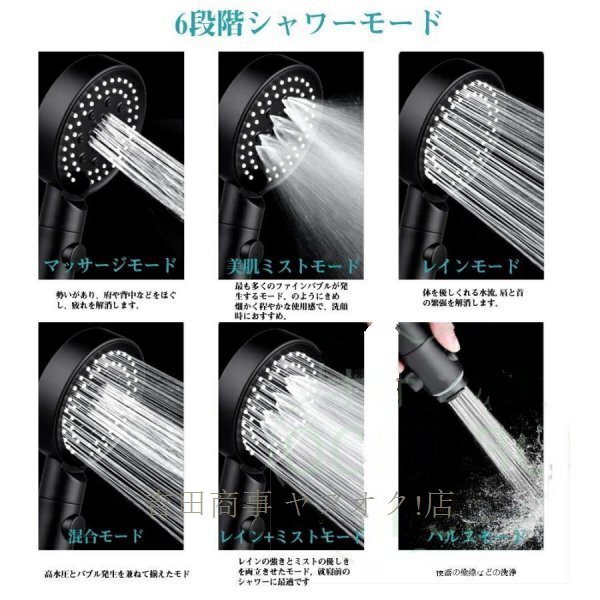 A8962☆シャワーヘッド ナノバブル 節水 塩素除去 高水圧 増圧シャワーヘッド 止水ボタンマ イクロバブル 6段階モードミスト 美容 頭皮ケア