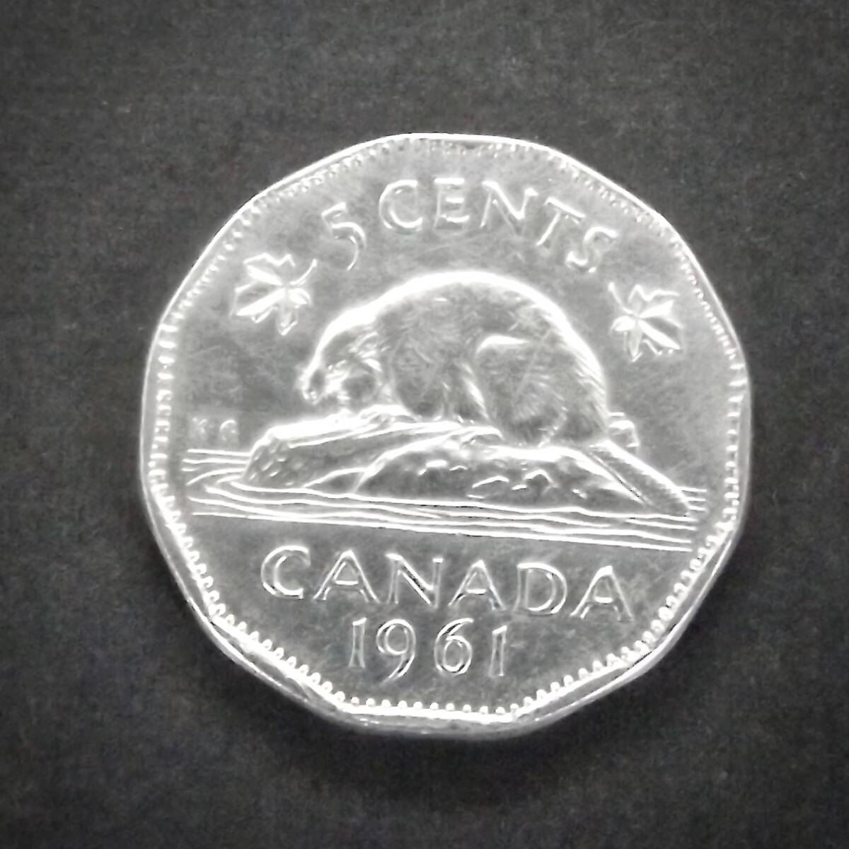 カナダ 5セント 1961年  送料無料 (17874) お金 貨幣 硬貨  コイン アンティーク コレクション 北アメリカ