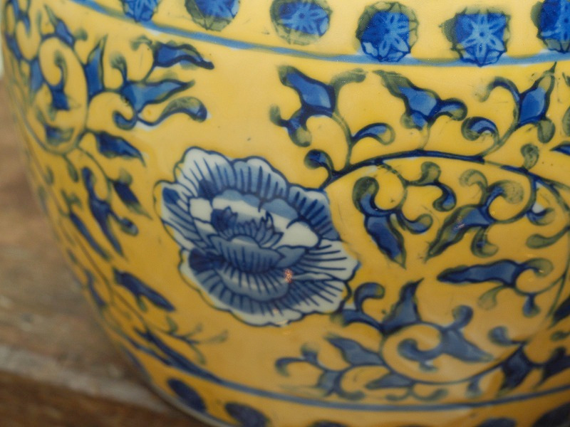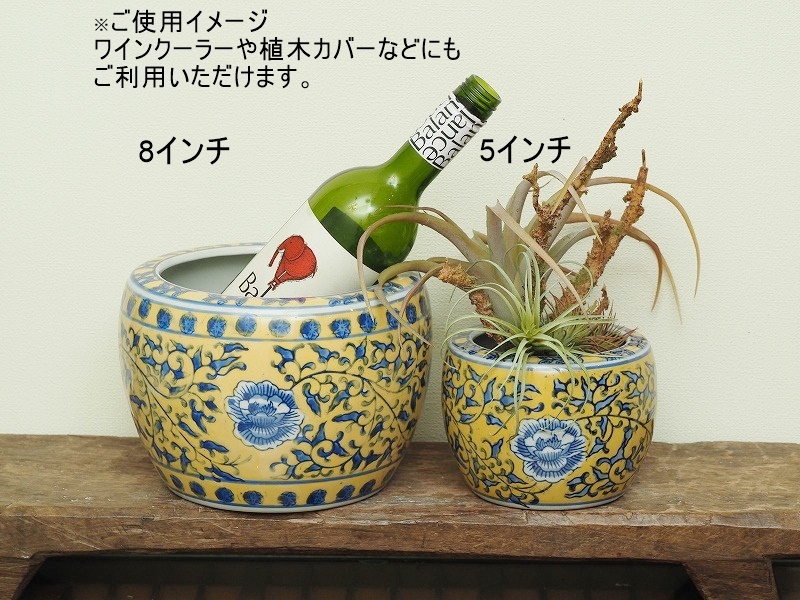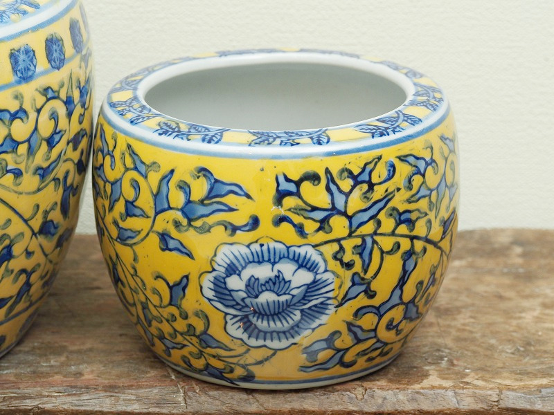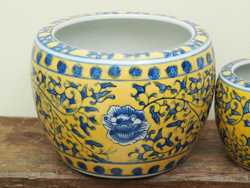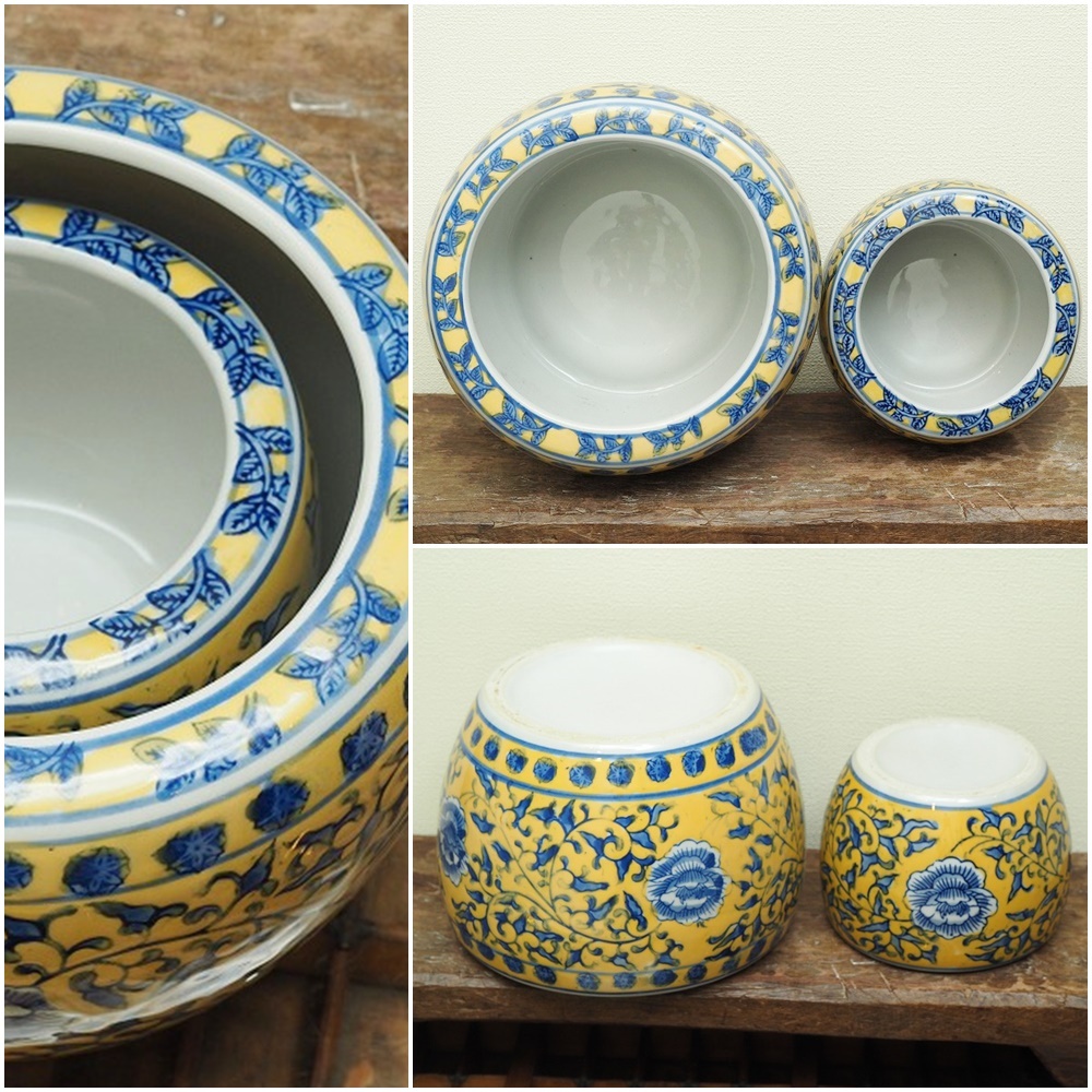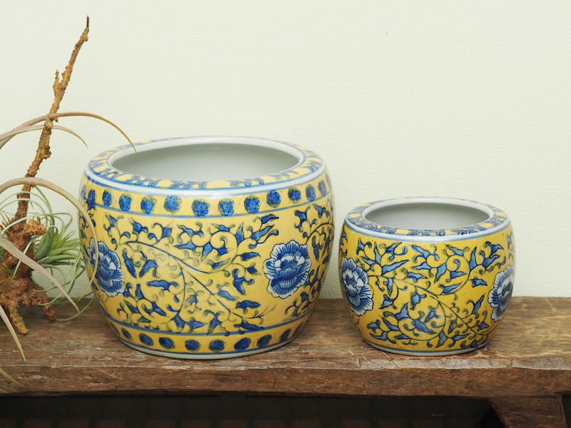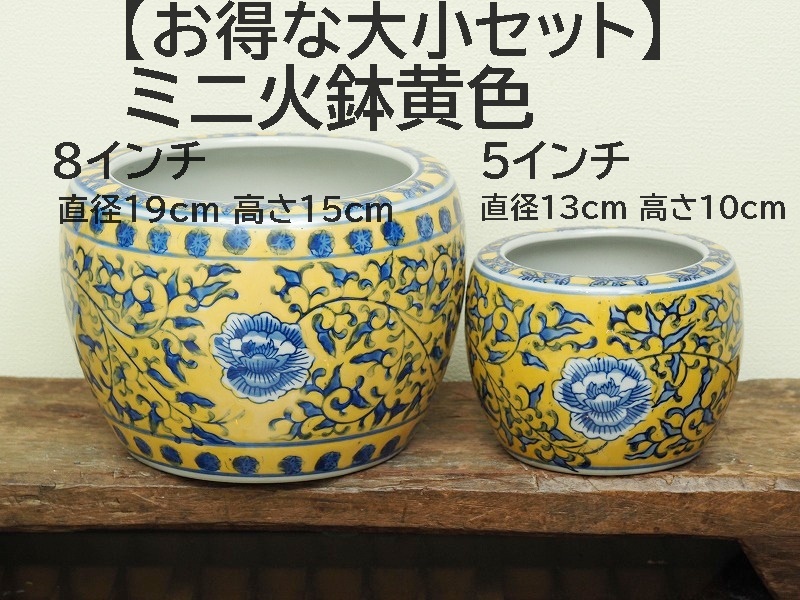 【お得な大小セット】 ミニ火鉢 8インチ 5インチ  2点 黄色 シノワズリ