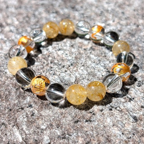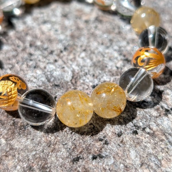 風水 四神獣 本水晶 ゴールド ルチルクォーツ ブレスレット 玄武 皇帝龍 朱雀 白虎 パワーストーン 10ミリ 金銭運上昇 お守り効果 ギフト