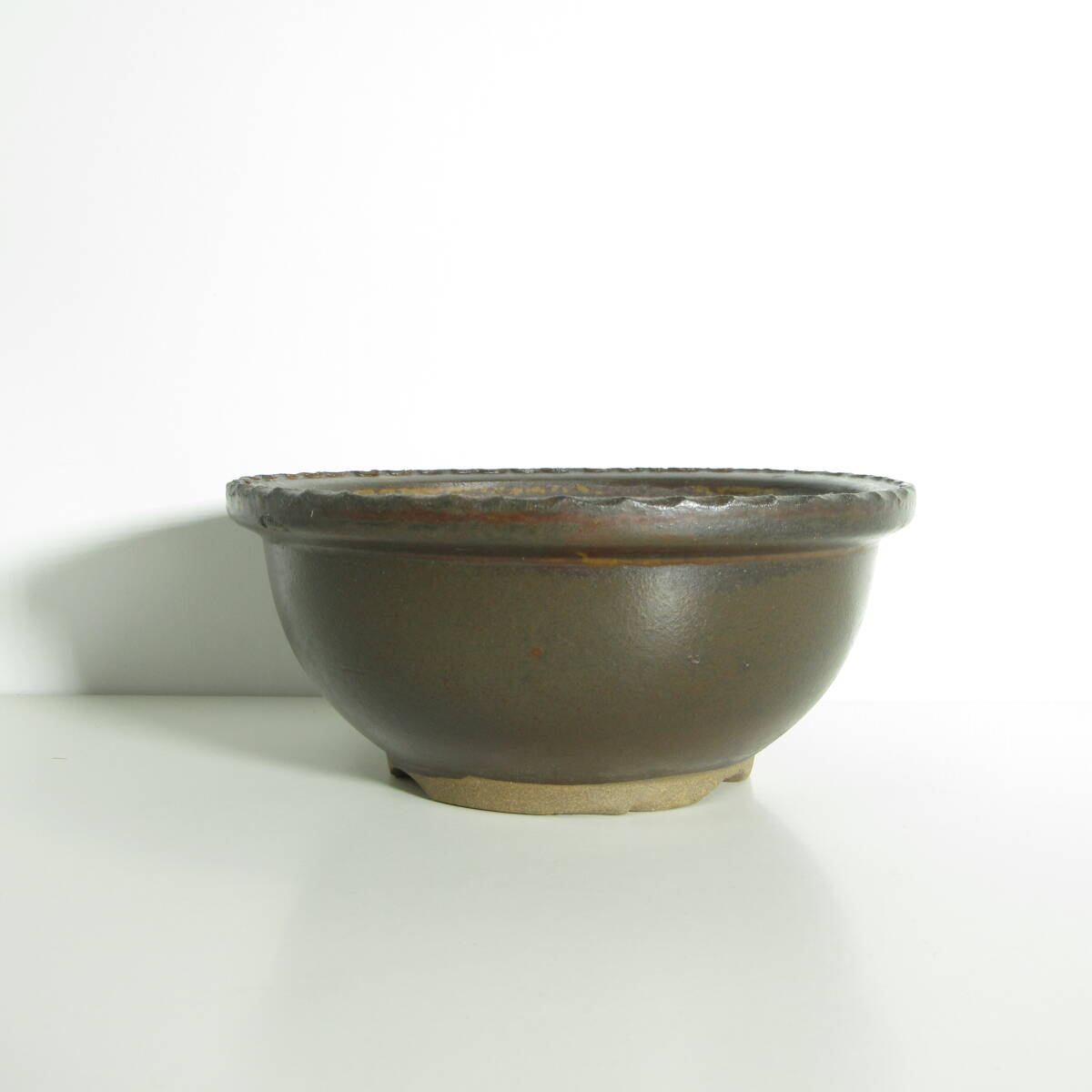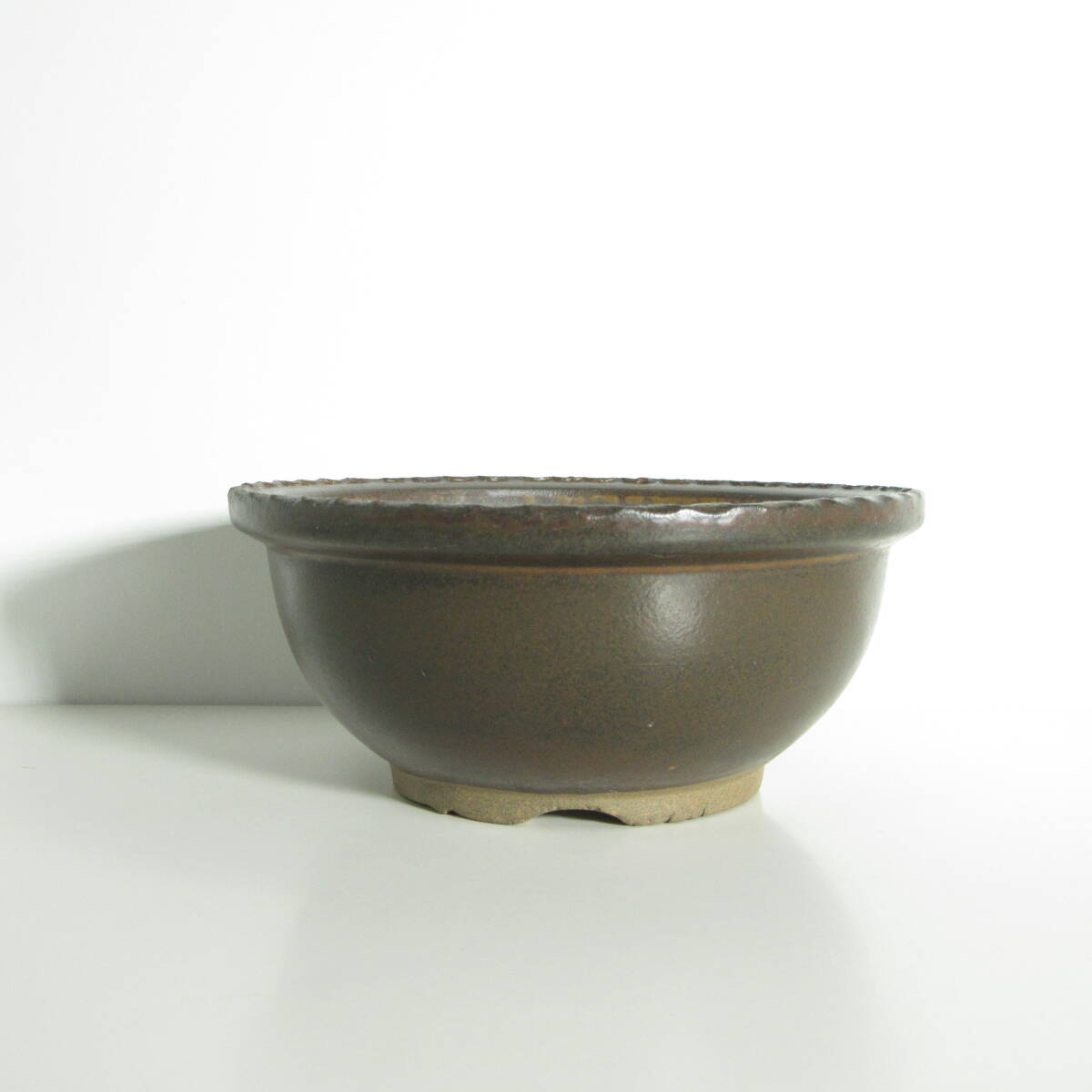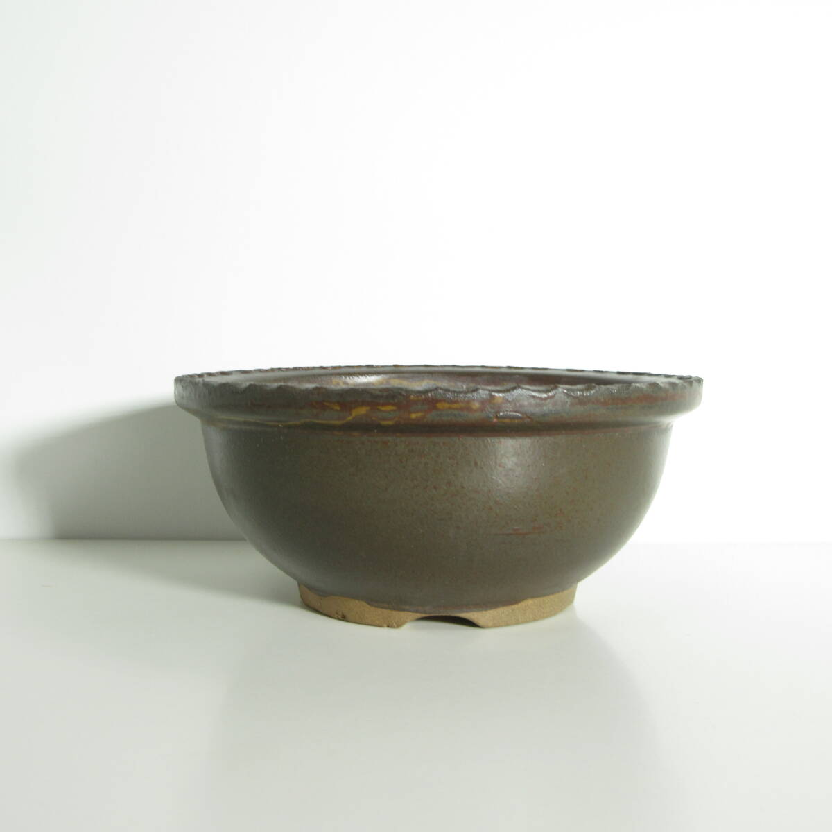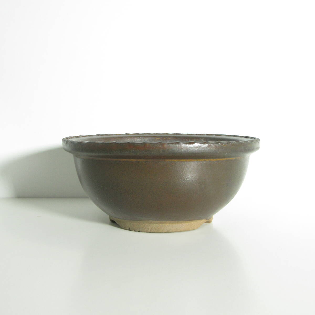 時代鉢 『 縄縁切足丸鉢 ( 小石原焼 ) 』KH-1/ 和鉢 盆栽鉢 山野草 植木鉢 丸鉢 古鉢 盆器 / 小品盆栽 山野草 に /【 盆栽用品・鉢 】