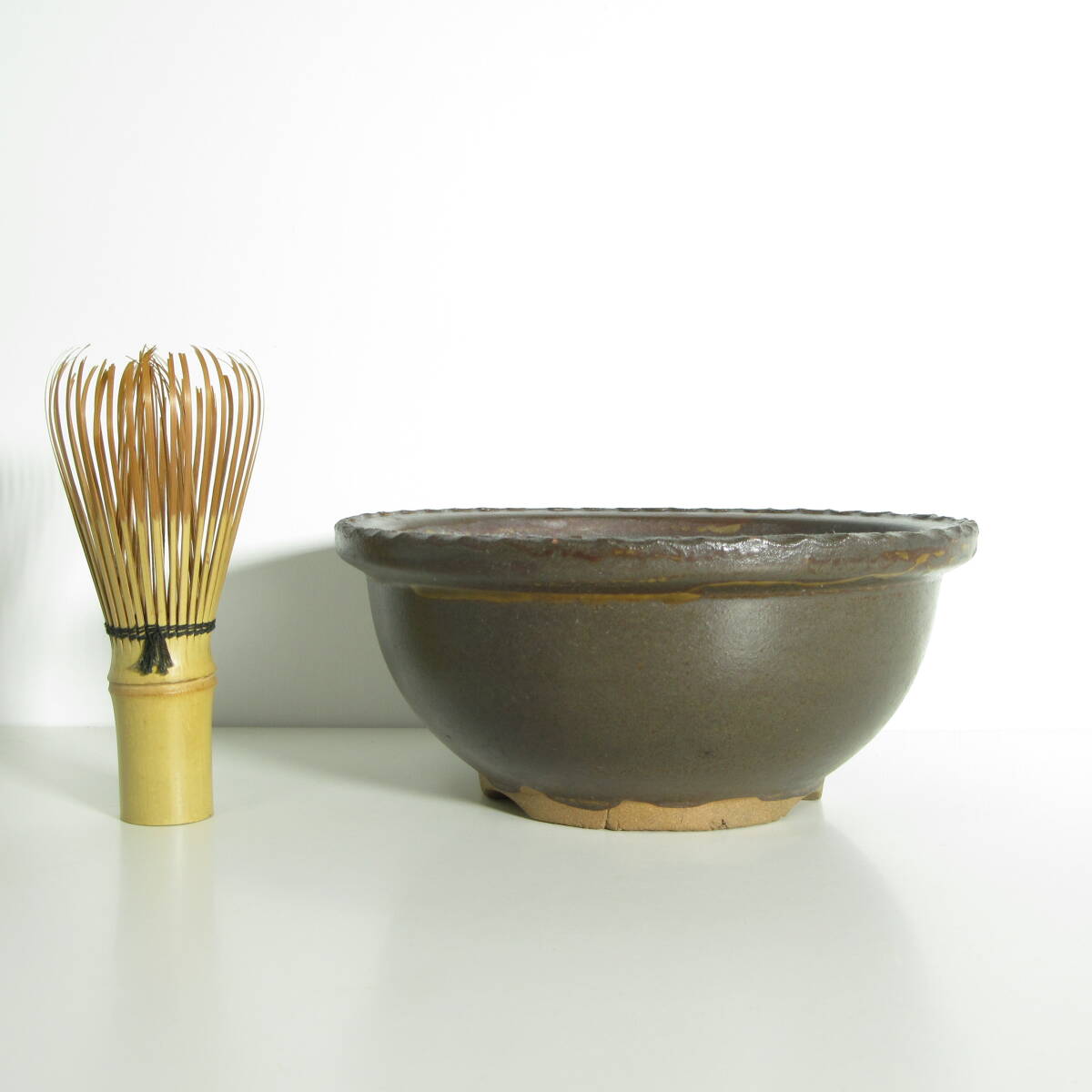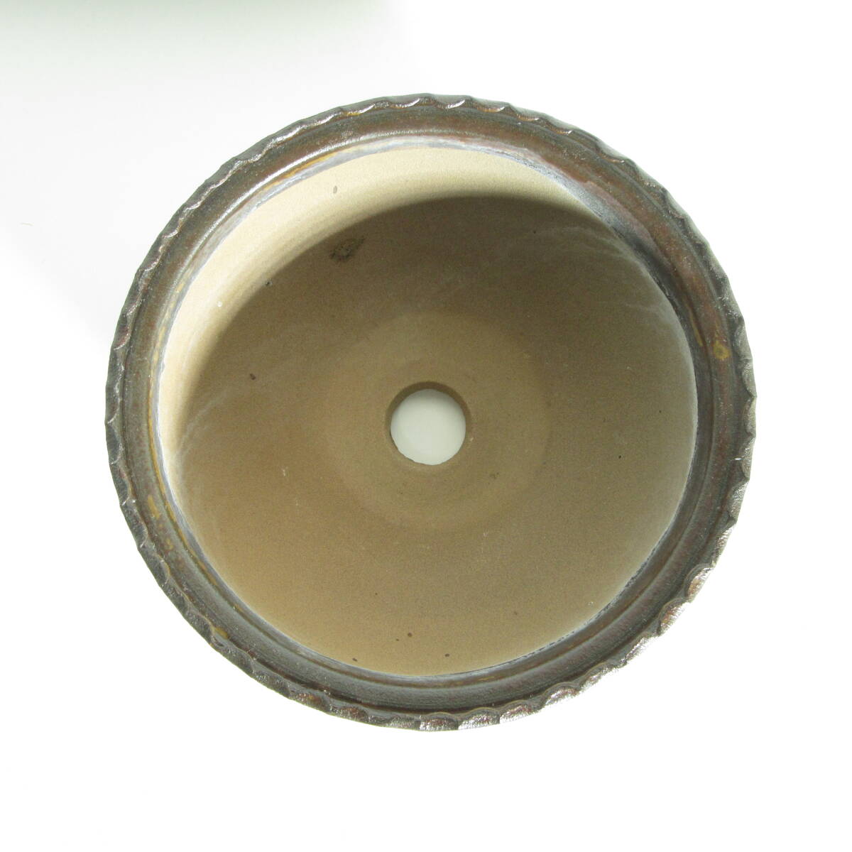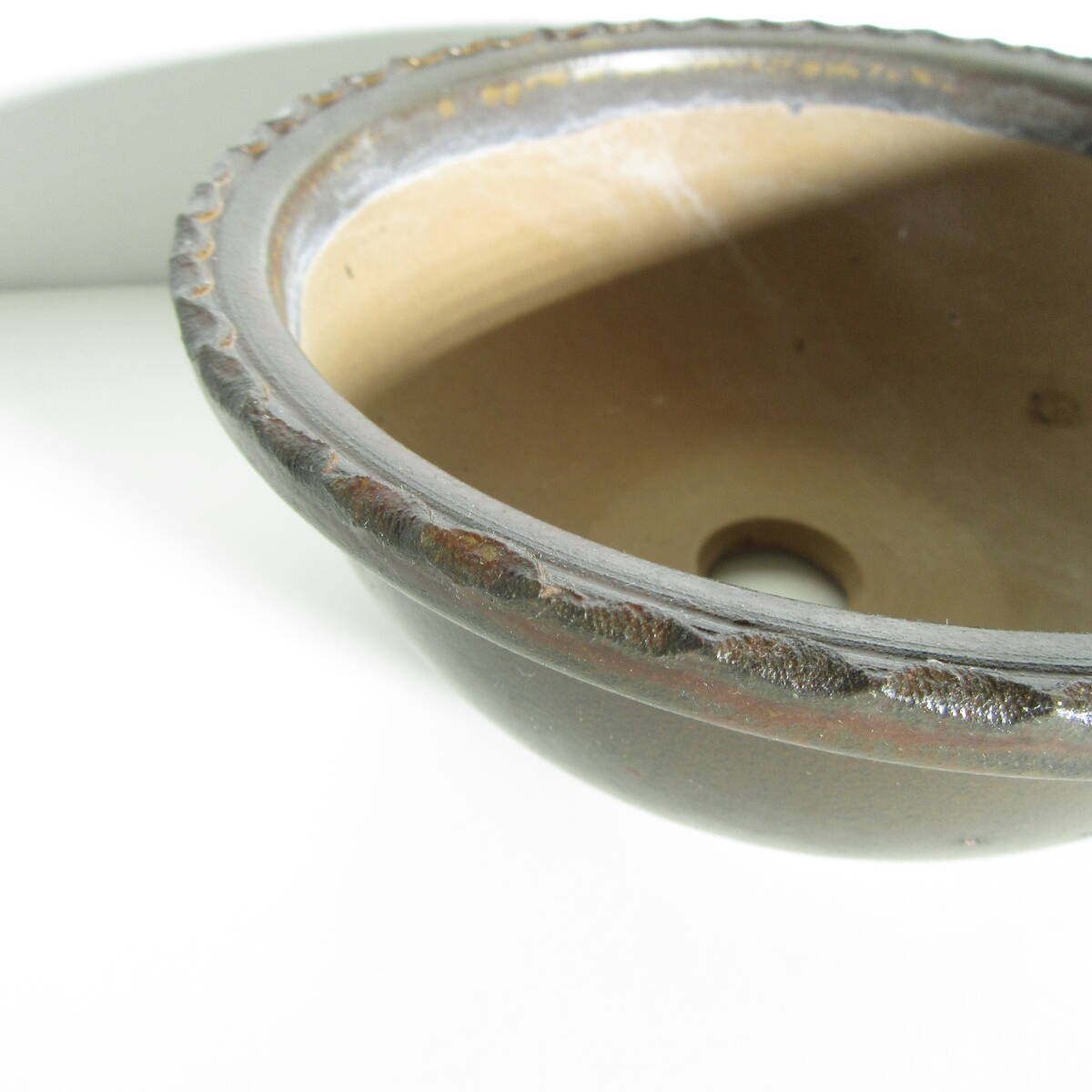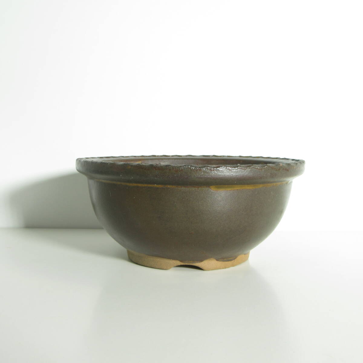 時代鉢 『 縄縁切足丸鉢 ( 小石原焼 ) 』KH-1/ 和鉢 盆栽鉢 山野草 植木鉢 丸鉢 古鉢 盆器 / 小品盆栽 山野草 に /【 盆栽用品・鉢 】