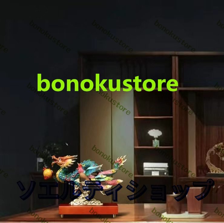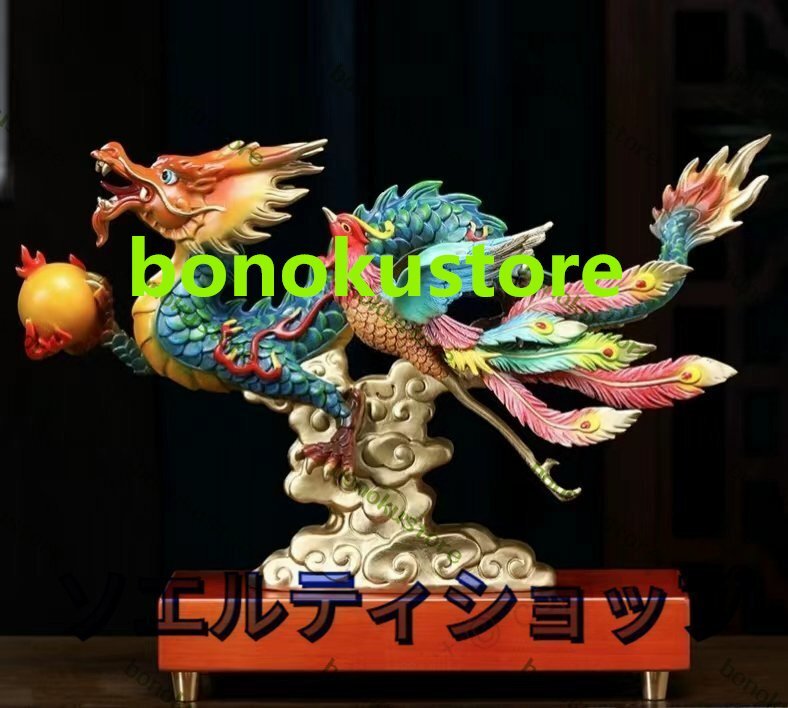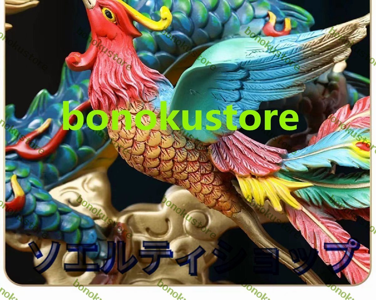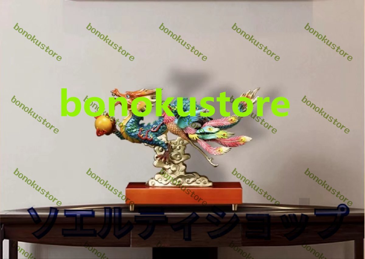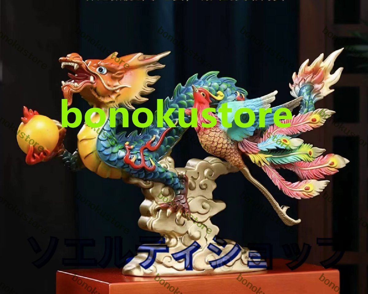 極美品 ★龍 鳳凰 置物 銅製 風水グッズ 朱雀 青龍 霊獣 辰 竜 夫婦円満 願望成就 仕事運 財運 出世運 愛情運 人間関係改善 置物